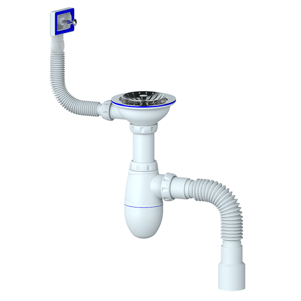 Сифон 3 1/2*40 B425P с прямоуг. переливом, с гофрой 40*40*50 UNICORN (винт, шток, ручка - пластик)