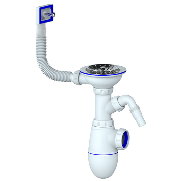 Сифон 3 1/2*40 B430VP с прямоуг. переливом, с носиком UNICORN (винт, шток, ручка - пластик)