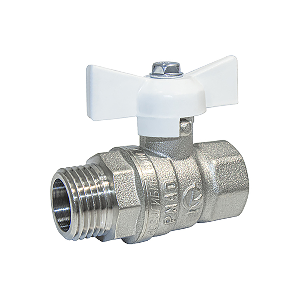 Кран шаровой 1/2'' вн/нар бабочка БЕЛАЯ 11б27п1 Стандарт 231 ГАЛЛОП никель PN40