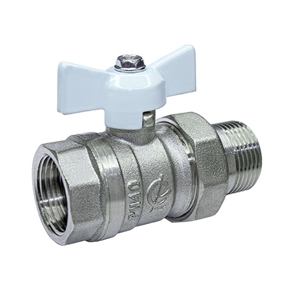 Кран шаровой со сгоном 3/4'' бабочка БЕЛАЯ 11б27п1 Стандарт 231 ГАЛЛОП никель PN40