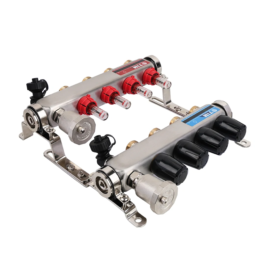 Коллекторная группа 1", 4 ходов, нержавеющий корпус, "КВАДРАТ" с расходомерами