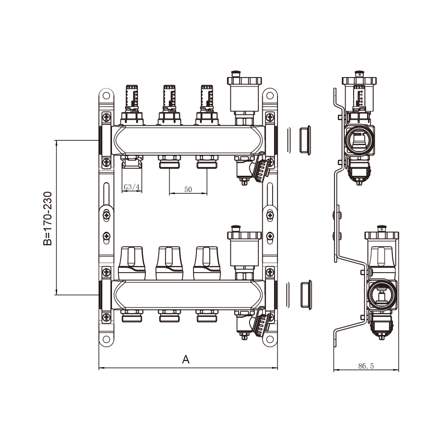 - Подробная комплектация напорный коллектор с запорными вентилями - 1 шт., обратный коллектор с термостатическими вентилями - 1 шт., дренажные клапаны - 2 шт., цельнометаллический кронштейн - 2 шт., заглушки - 2 шт.