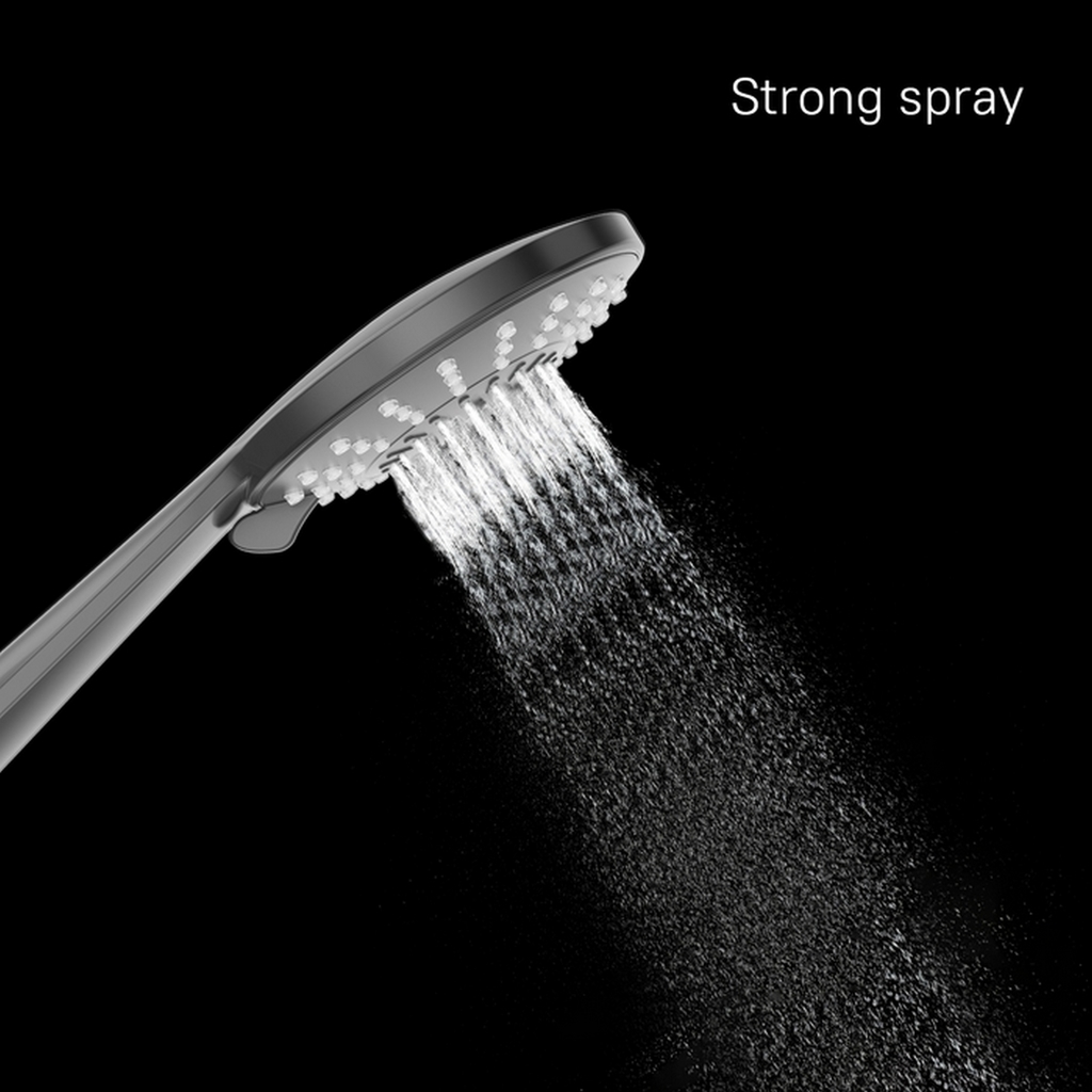Лейка для душа Ideal Spa станет оптимальным решением для современных интерьеров. Для комфортного принятия душа у нее увеличенный (110 мм) диаметр и большое разнообразие режимов работы: Spray, Massage, Spray&Massage, Strong spray и Spray&Strong spray. Режимами удобно управлять поворотным рычажком на лицевом диске. Лаконичная лейка подойдет к большинству моделей округлых стоек и держателей, например из ассортимента душевых аксессуаров Milardo®. Трендовый черный цвет станет ярким акцентом в пространстве ванной.- Матовое цветное покрытие защищает лейку Milardo® от появления царапин и устойчиво к выцветанию (при должном уходе).