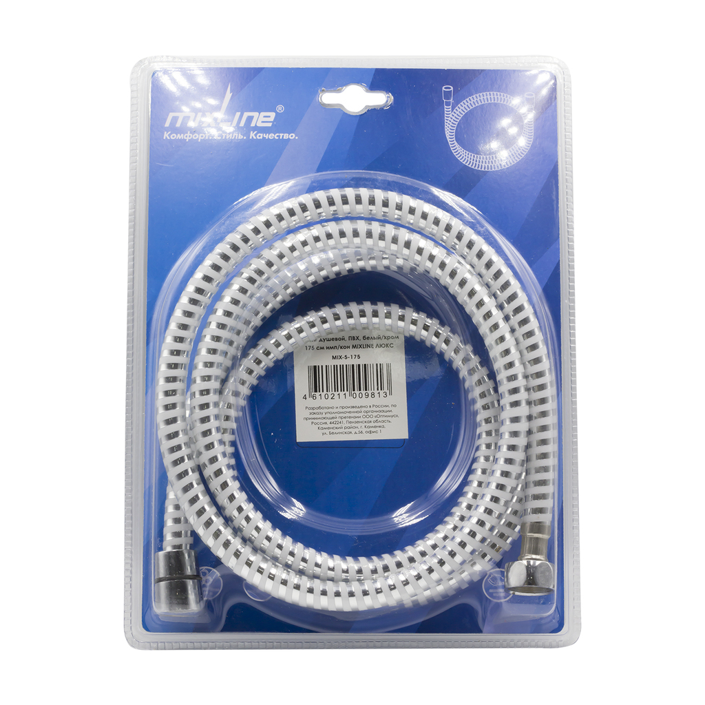 Шланг душевой 175 см имп/кон, ПВХ, белый/хром MIXLINE MIX-5-175 ЛЮКС (блистер)