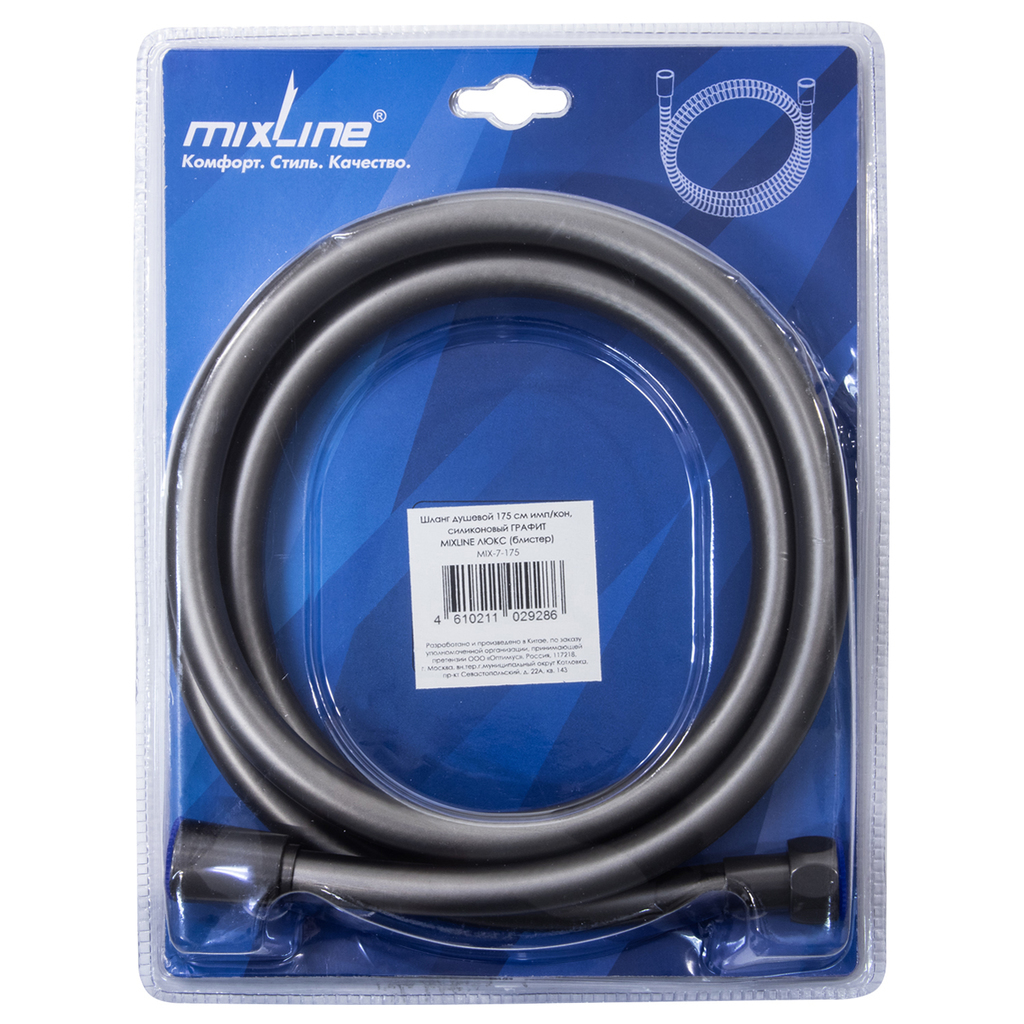 Шланг душевой 175 см имп/кон, силиконовый ГРАФИТ MIXLINE MIX-7-175 ЛЮКС (блистер)