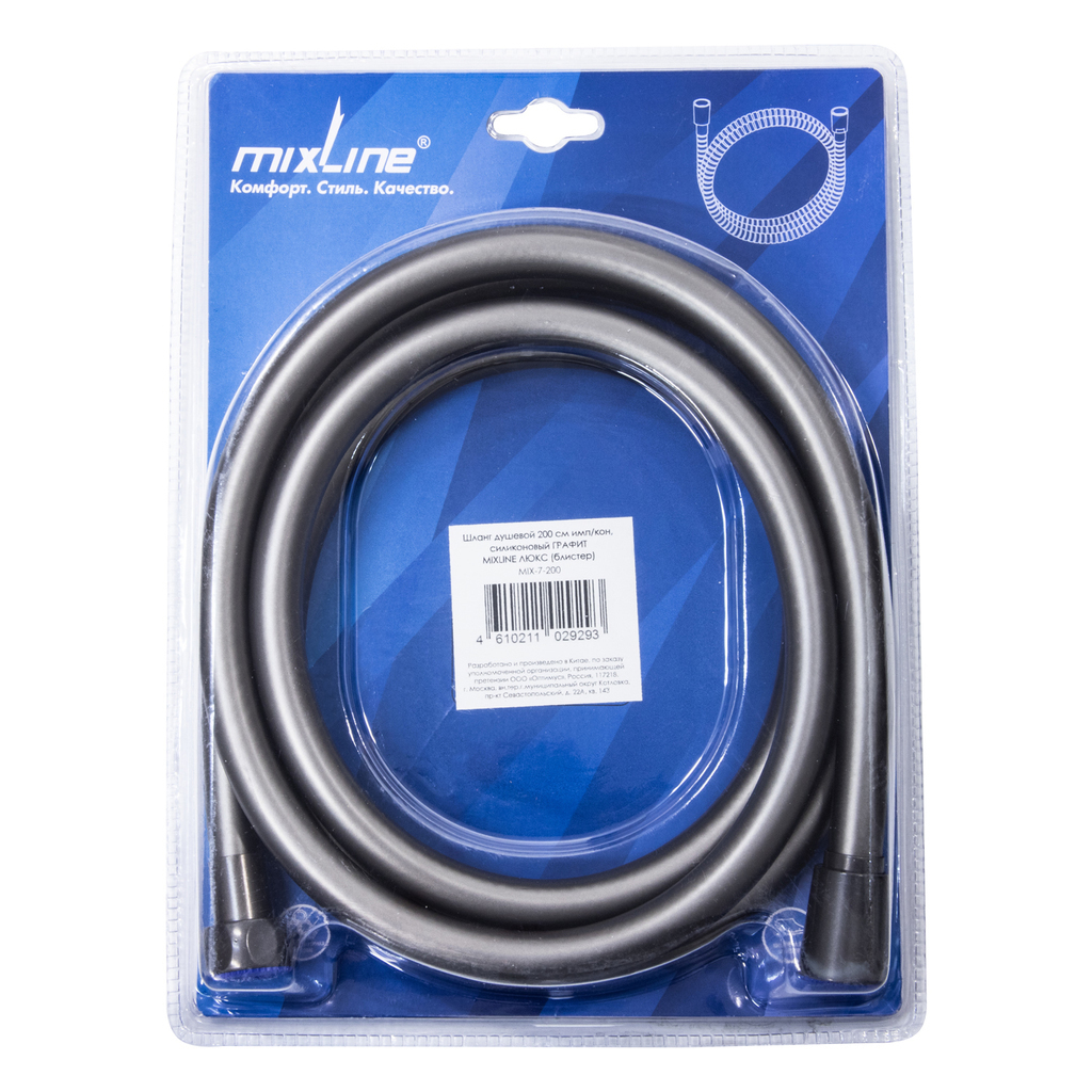 Шланг душевой 200 см имп/кон, силиконовый ГРАФИТ MIXLINE MIX-7-200 ЛЮКС (блистер)