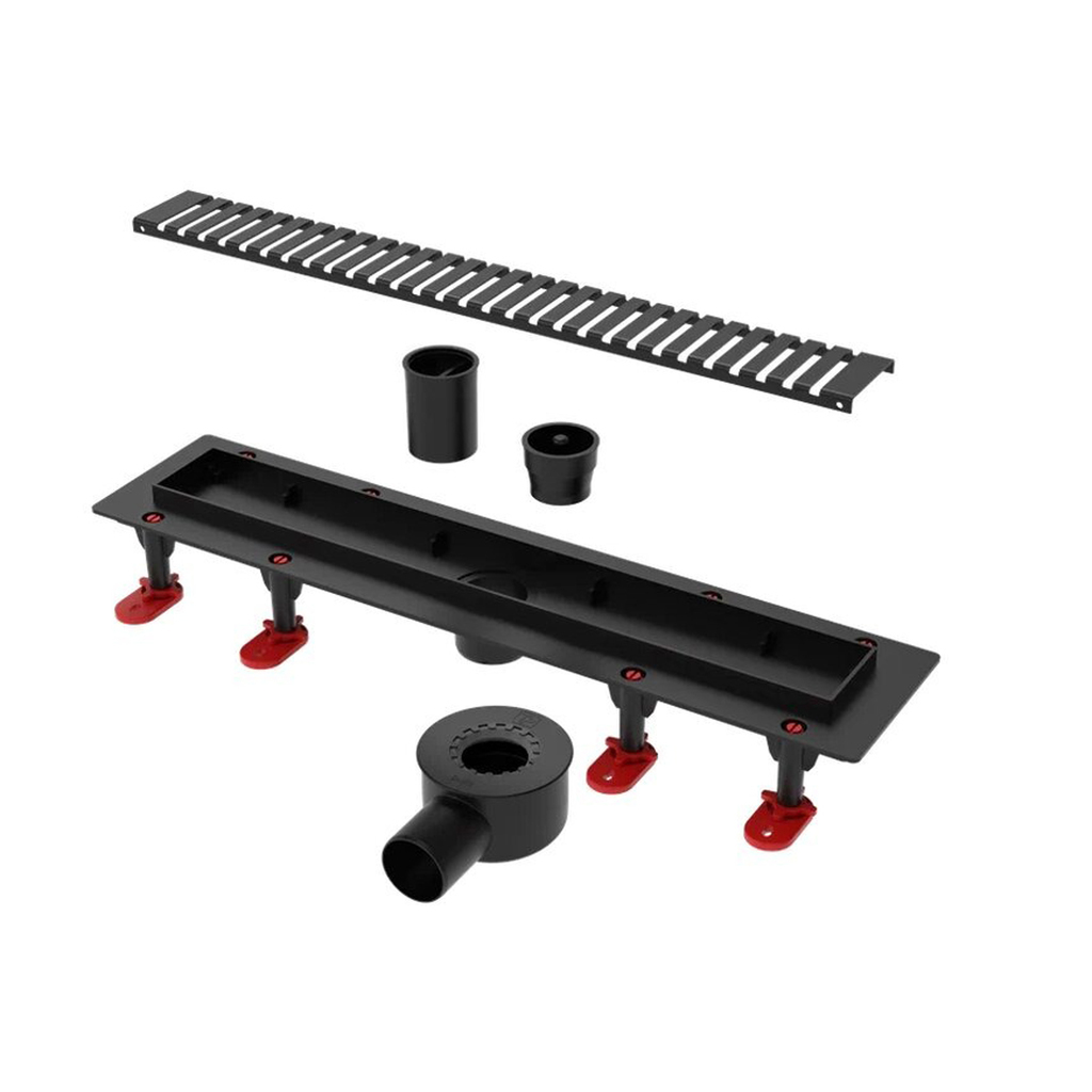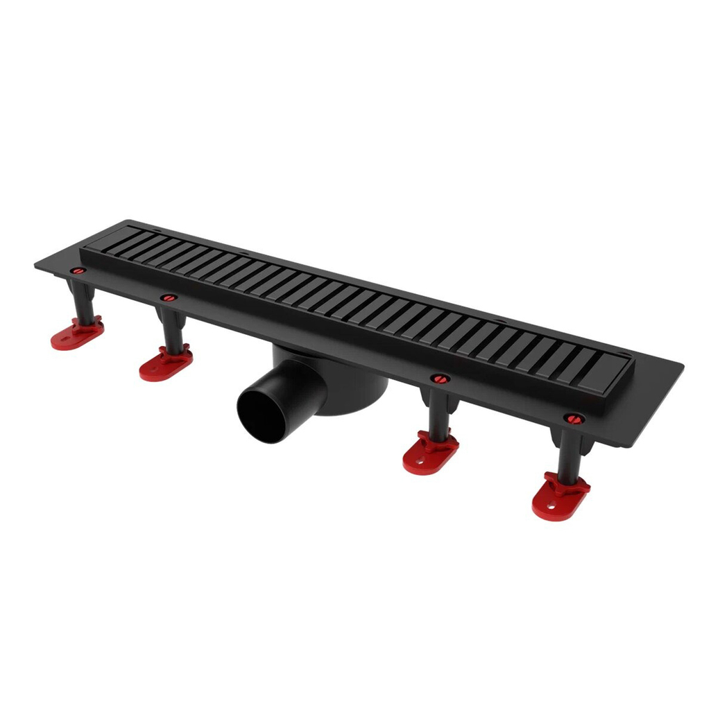Трап линейный ТП-55D-500 решетка из нерж. стали "Полосы"с гориз. вых.D50 мм рамка из пластика ЧЕРНЫЙ
