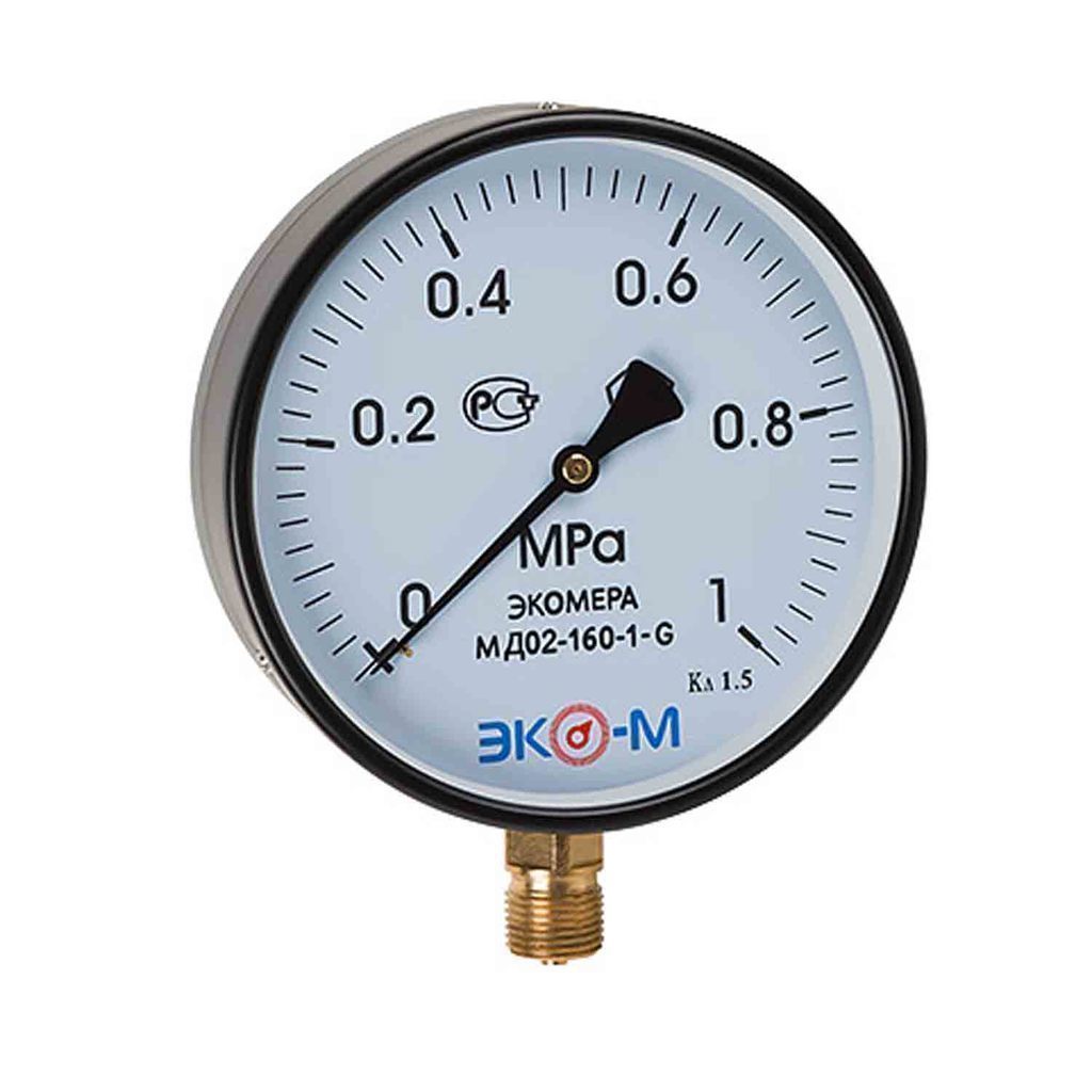 Манометр общетехнический ЭКОМЕРА МД02 для измерения давления газообразных и жидких, не сильновязких и кристаллизующихся сред, не агрессивных по отношению к медным сплавам (вода, пар, газ).