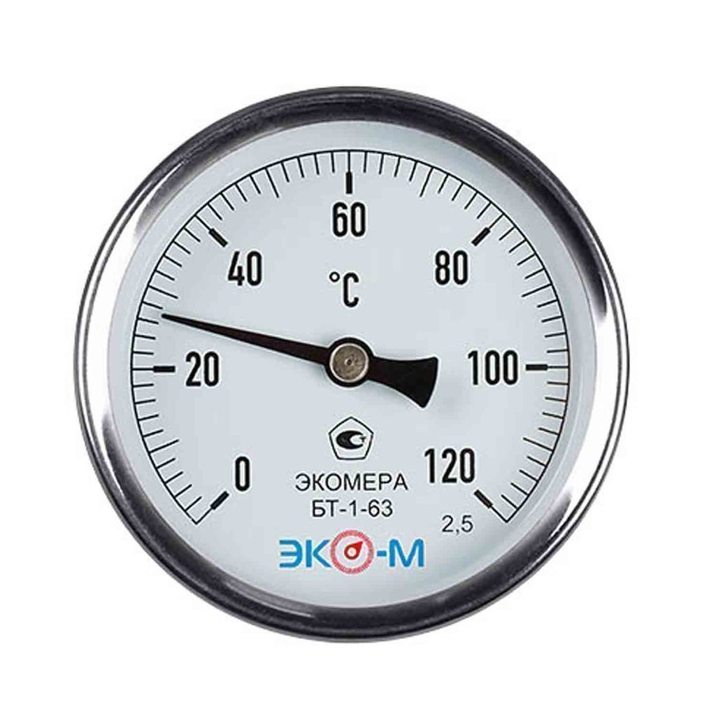 Термометр 63х1/2'' 120С БТ-1-63 шток 40мм (осевое подкл.,корпус алюминий) ЭКОМЕРА