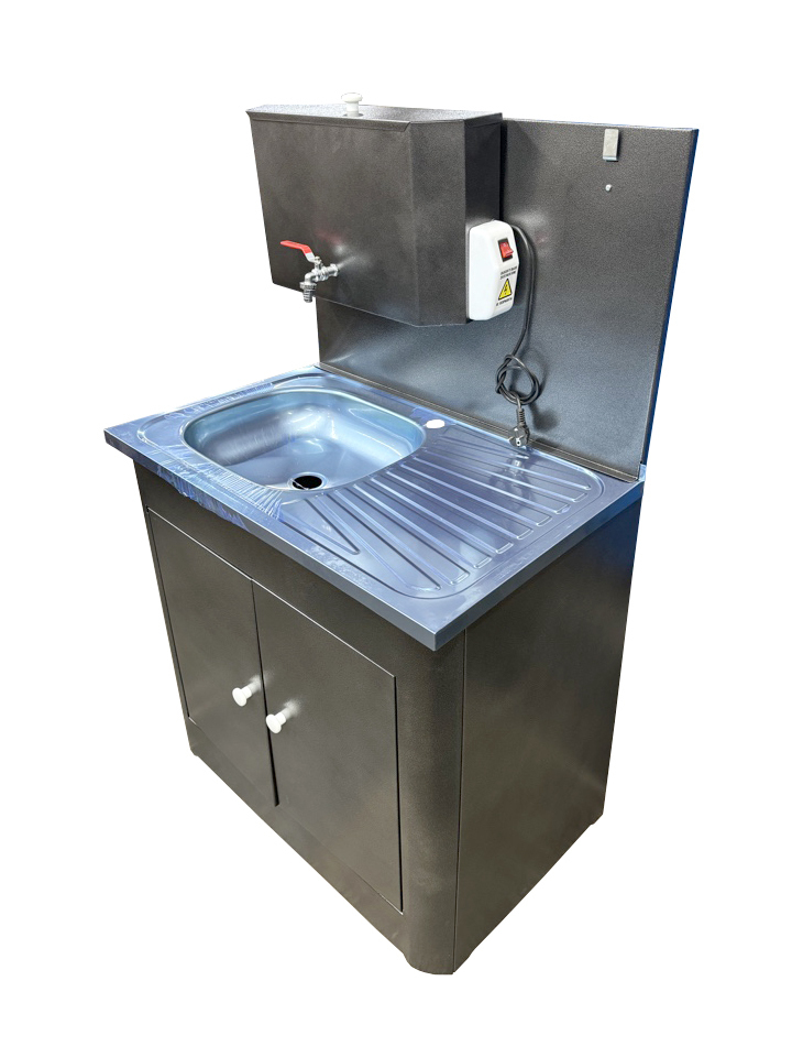 Двухдверный дачный умывальник с ЭВН - удобное и практичное решение для создания комфортных условий гигиены на вашей даче или загородном участке Основой данного продукта является прочная и надежная металлическая тумба, которая гарантирует стабильность и долговечность умывальника. Вместительный бак и тумба из металла изготовлены из стали, мойка 50х80 из нержавейки.
