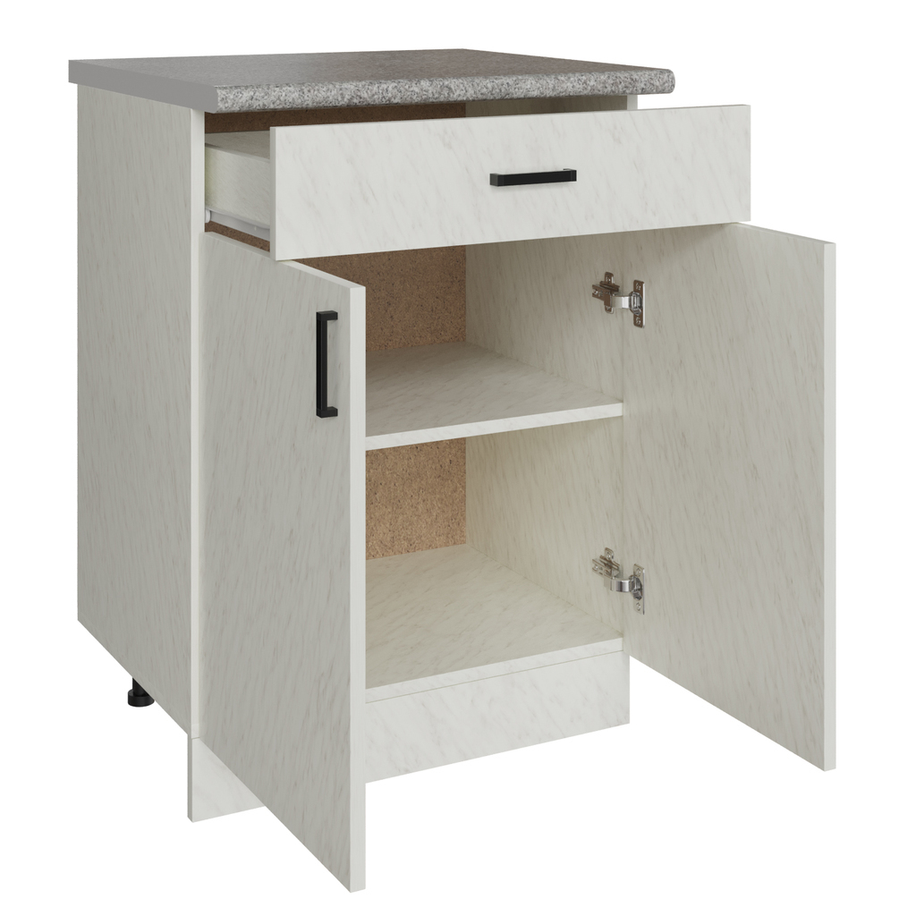 Стол разделочный 60 белый мрамор (1 ящик), столешница гранит пёстрый
