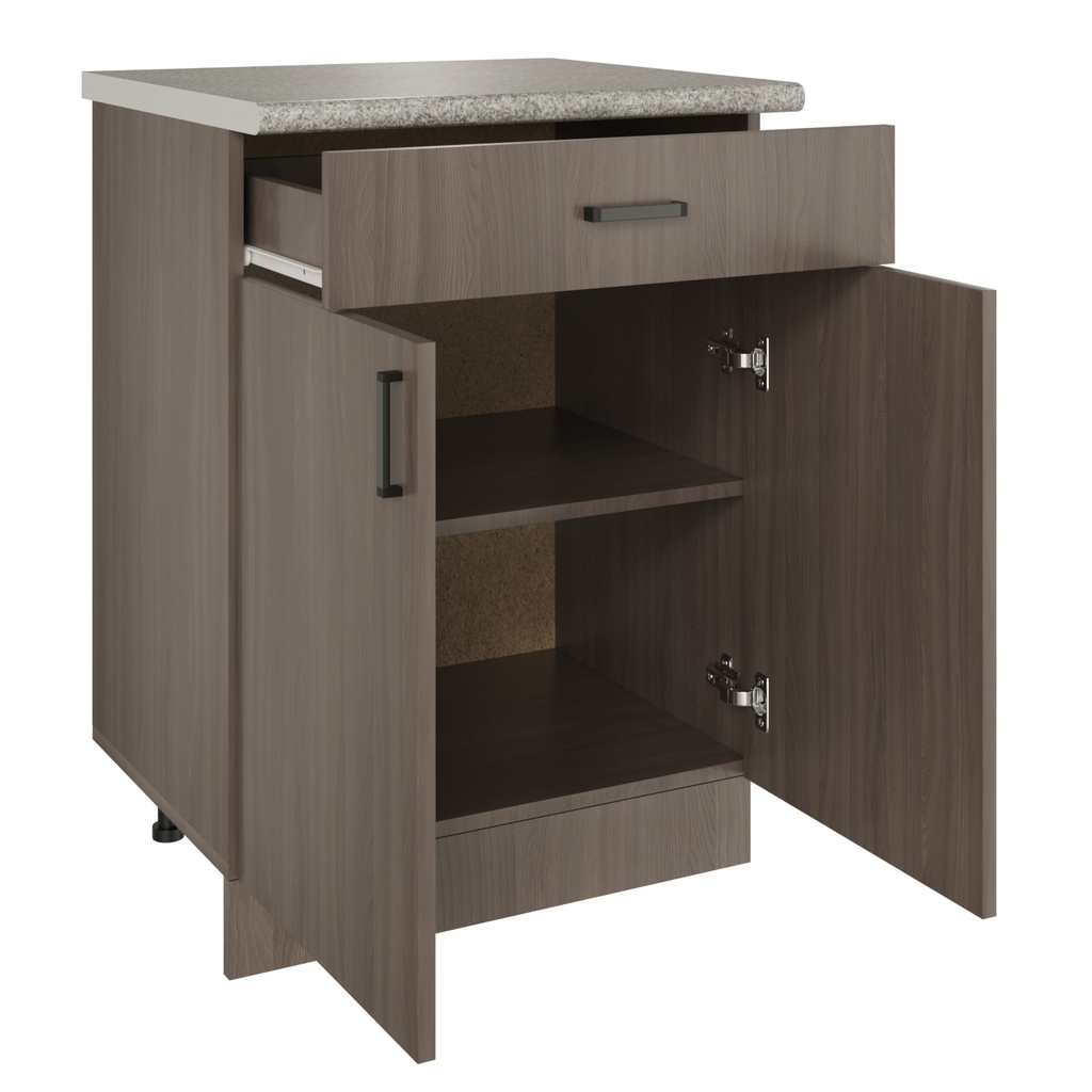 Стол разделочный 60 шимо/ясень темный (1 ящик), столешница гранит пёстрый