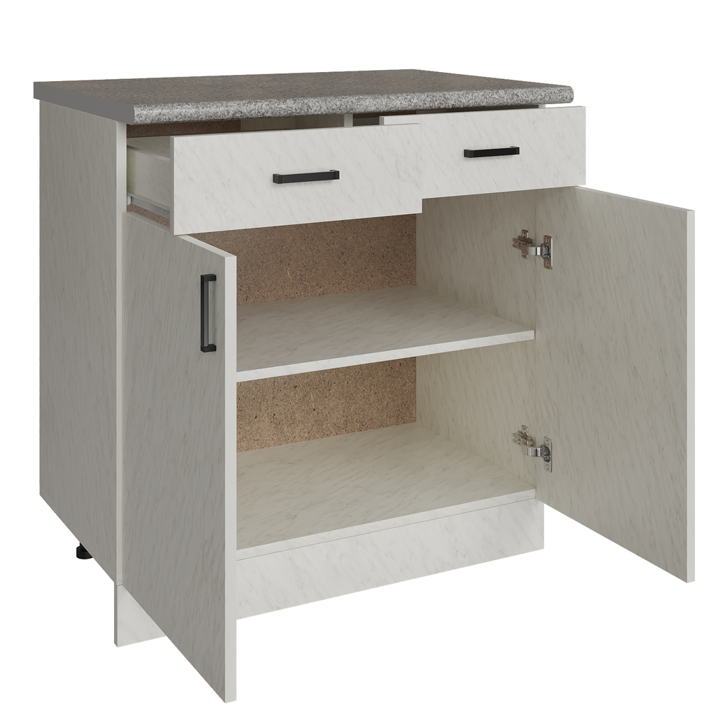 Стол разделочный 80 белый мрамор (2 ящика), столешница гранит пёстрый