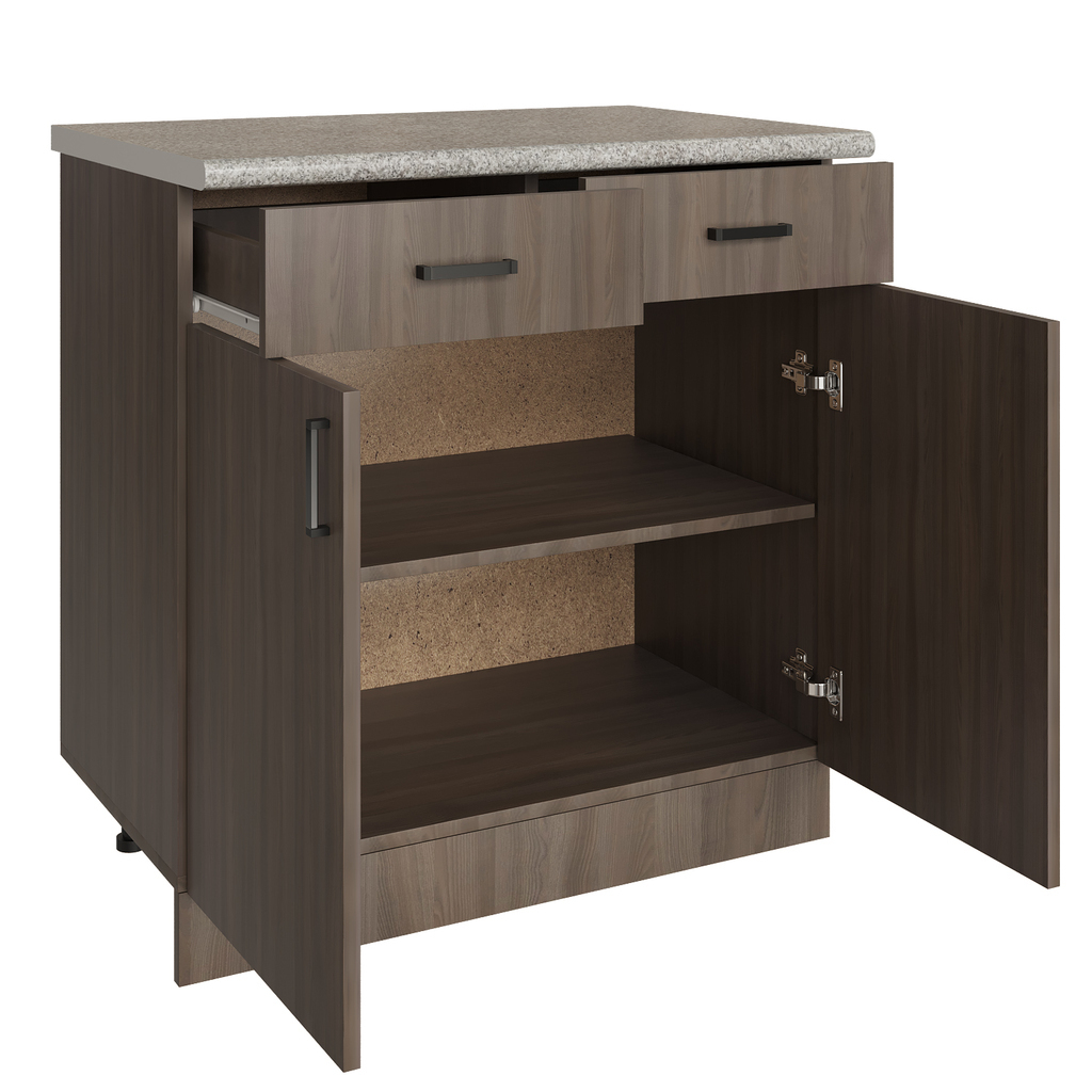 Стол разделочный 80 шимо/ясень темный (2 ящика), столешница гранит пёстрый