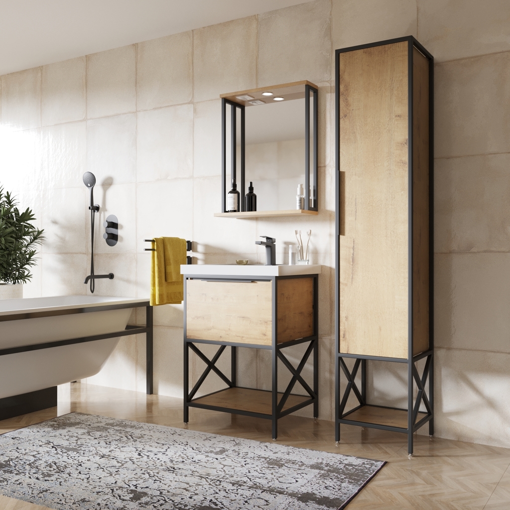 Зеркальный шкаф "БРУКЛИН" 60 Дуб Бунратти с подсветкой ЛОФТ (ЛДСП)