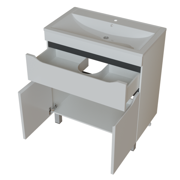 С помощью коллекции "Лайн" легко полностью обустроить ванную комнату в едином стиле, выбрав модели из представленного размерного ряда. В серии представлены подвесные и напольные тумбы, зеркальные шкафы с подсветкой, а также напольный пенал.