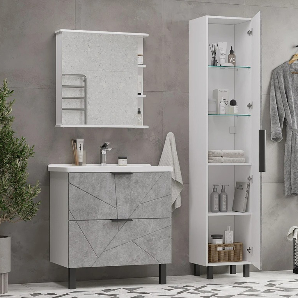 Серия "Гранд" - это ультрасовременная коллекция мебели для ванной комнаты. Рельефный фасад, образованным геометрической фрезеровкой, создает интересный эффект, делает мебель оригинальной, а интерьер ванной комнаты уникальным. Нейтральный серый цвет в сочетании с необычной фактурой фасада - это свежее веяние в дизайне интерьера, которое еще долгое время будет популярным.Мебель коллекции "Гранд" при этом практичная и функциональная. Система хранения позволяет удобно хранить средства гигиены, аксессуары и прочие необходимые вещи.