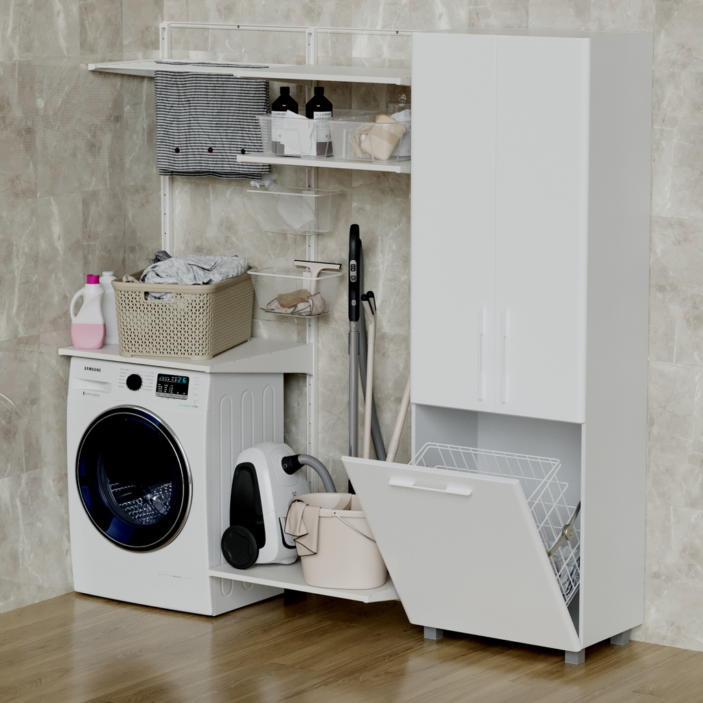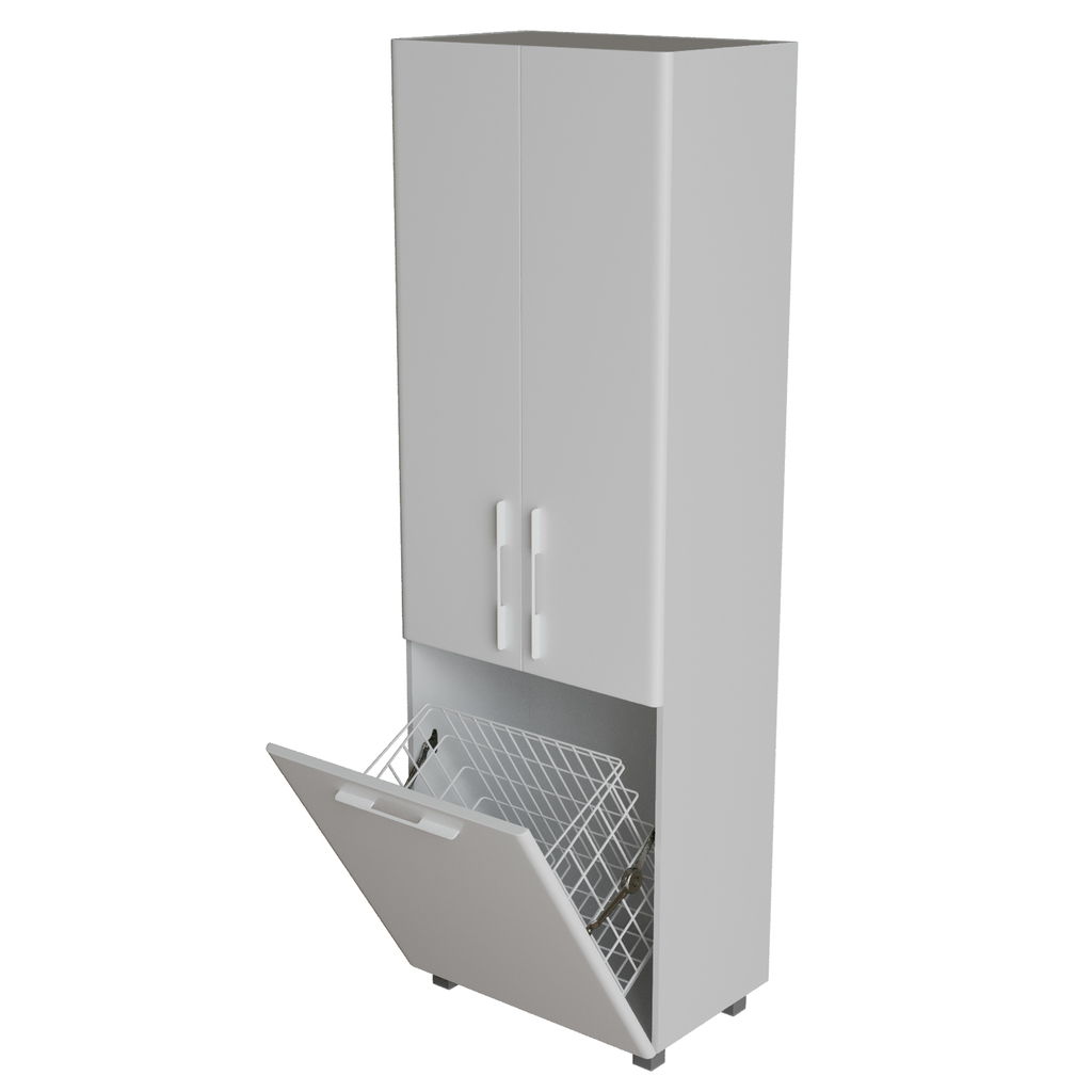 Пенал для ванной комнаты Спутник белого цвета отличается элегантным дизайном и вместительным пространством для хранения. В него встроена корзина для белья, обеспечивающая удобство и функциональность для организации необходимых вещей в ванной комнате.Благодаря современному внешнему виду и практичности он станет стильным дополнением любой ванной комнаты.