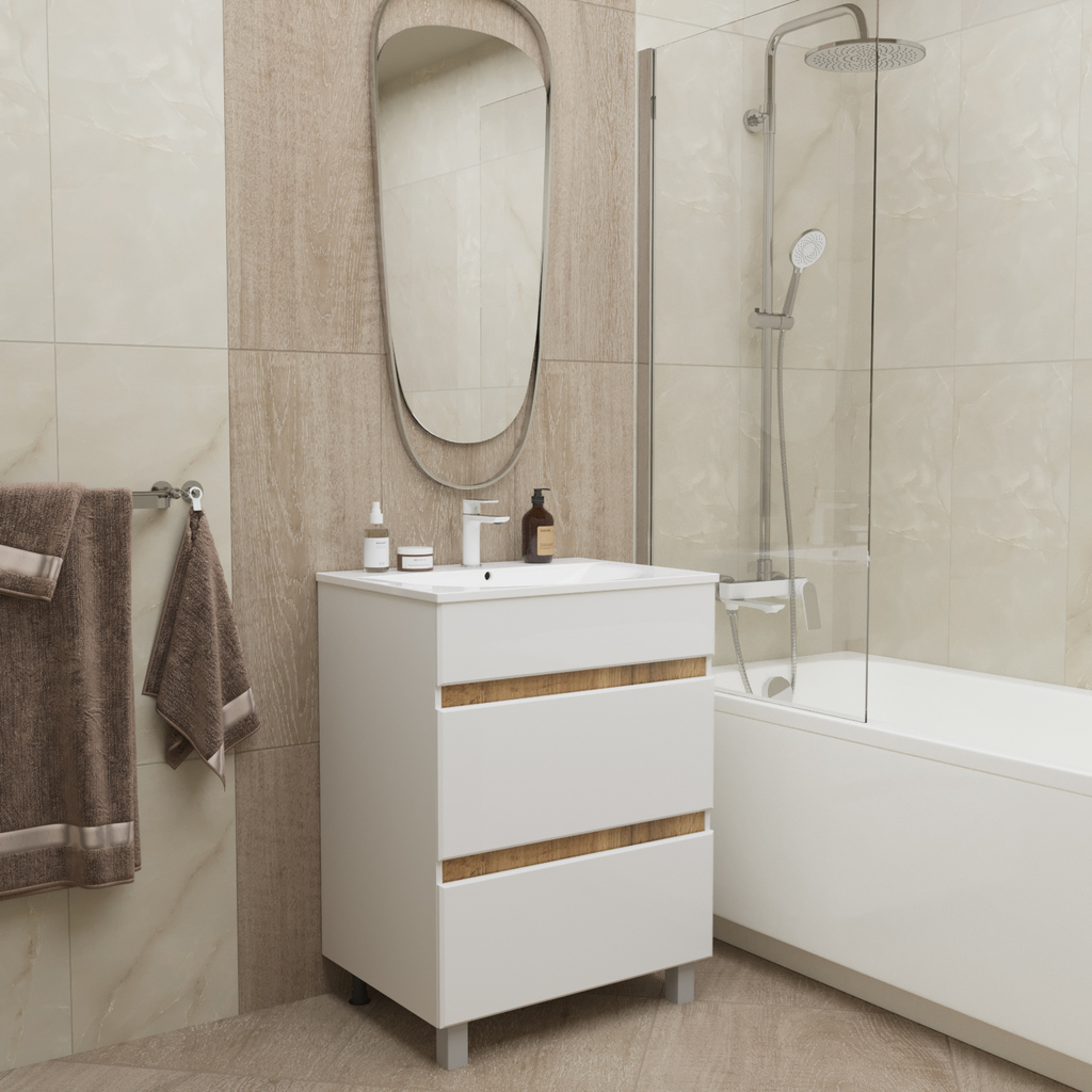 Тумба д/ванной "БРИКС-50" 2 ящика белый/дуб вотан под рак."Breeze 50" мебельный (Sanita Luxe) (ПВХ)