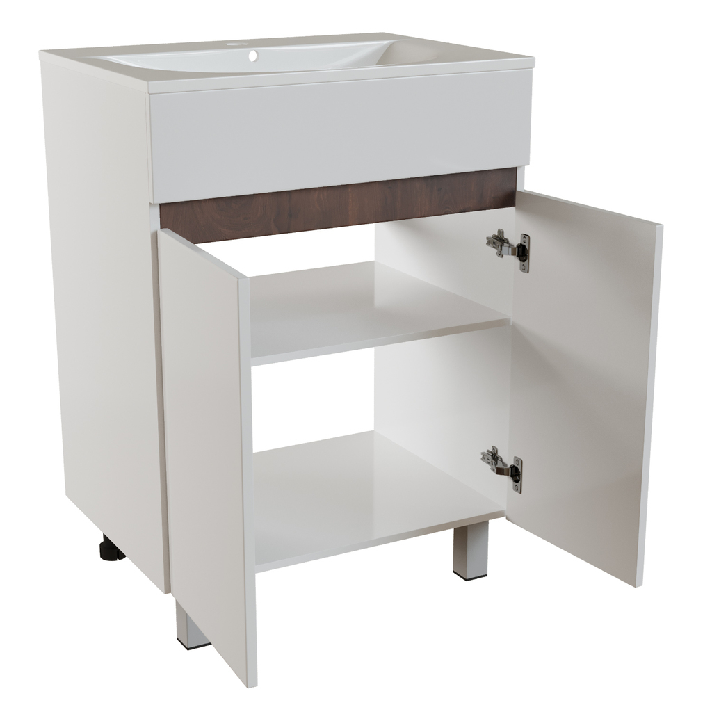 Тумба д/ванной "БРИКС-60" 2 ст. белый/дуб вотан под рак."Breeze 60" меб. (Sanita Luxe)(ПВХ)(разбор)