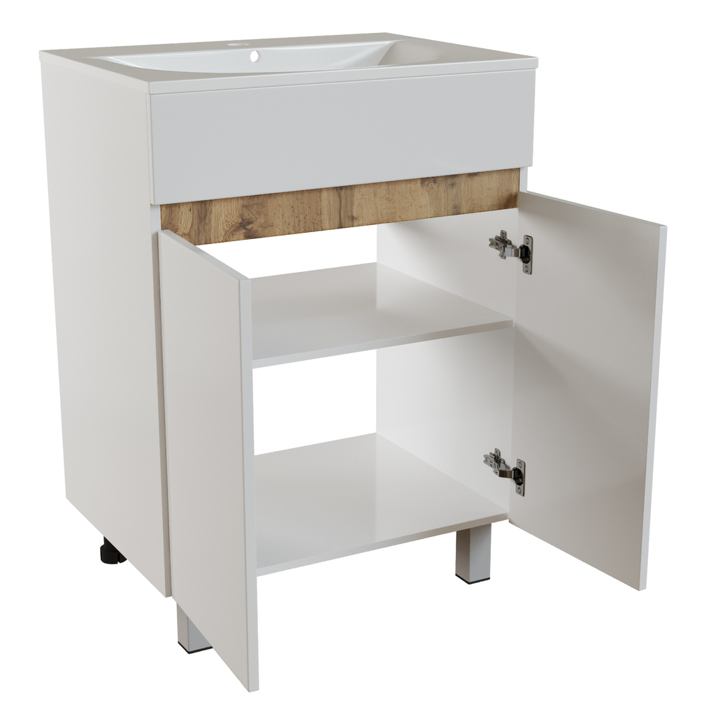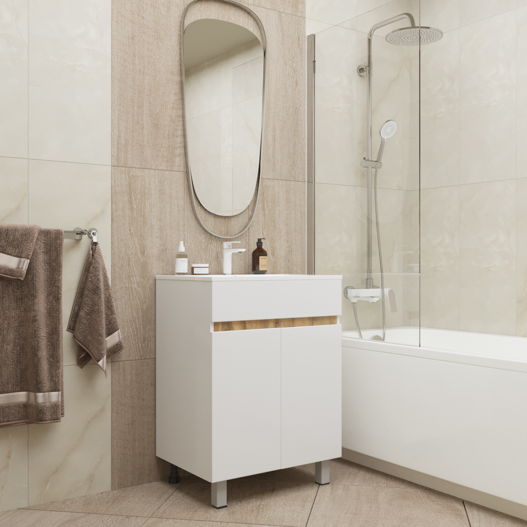 Тумба д/ванной "БРИКС-60" 2 створки белый/дуб вотан под рак."Breeze 60" мебельный (Sanita Luxe)(ПВХ)