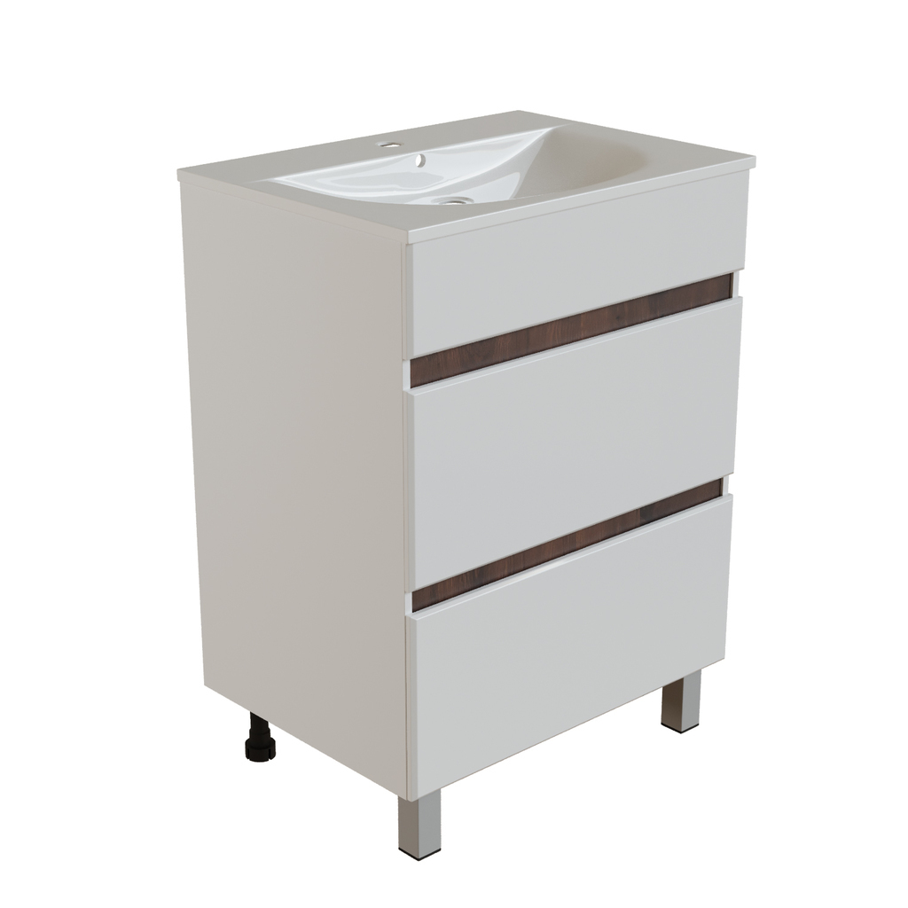 Тумба д/ванной "БРИКС-60" 2 ящ. белый/дуб вотан под рак."Breeze 60" меб. (Sanita Luxe) (ПВХ)(разбор)