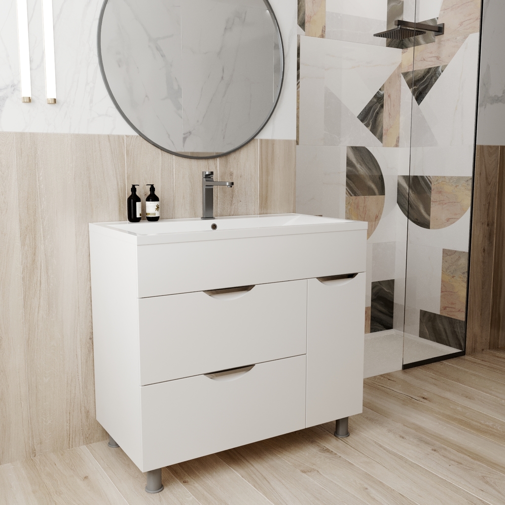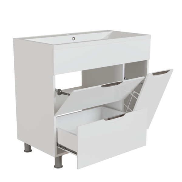Тумба д/ванной "ЭТЬЕН-90" с бельевой корзиной под раковину Нелли-90 (MIXLINE) (ПВХ)