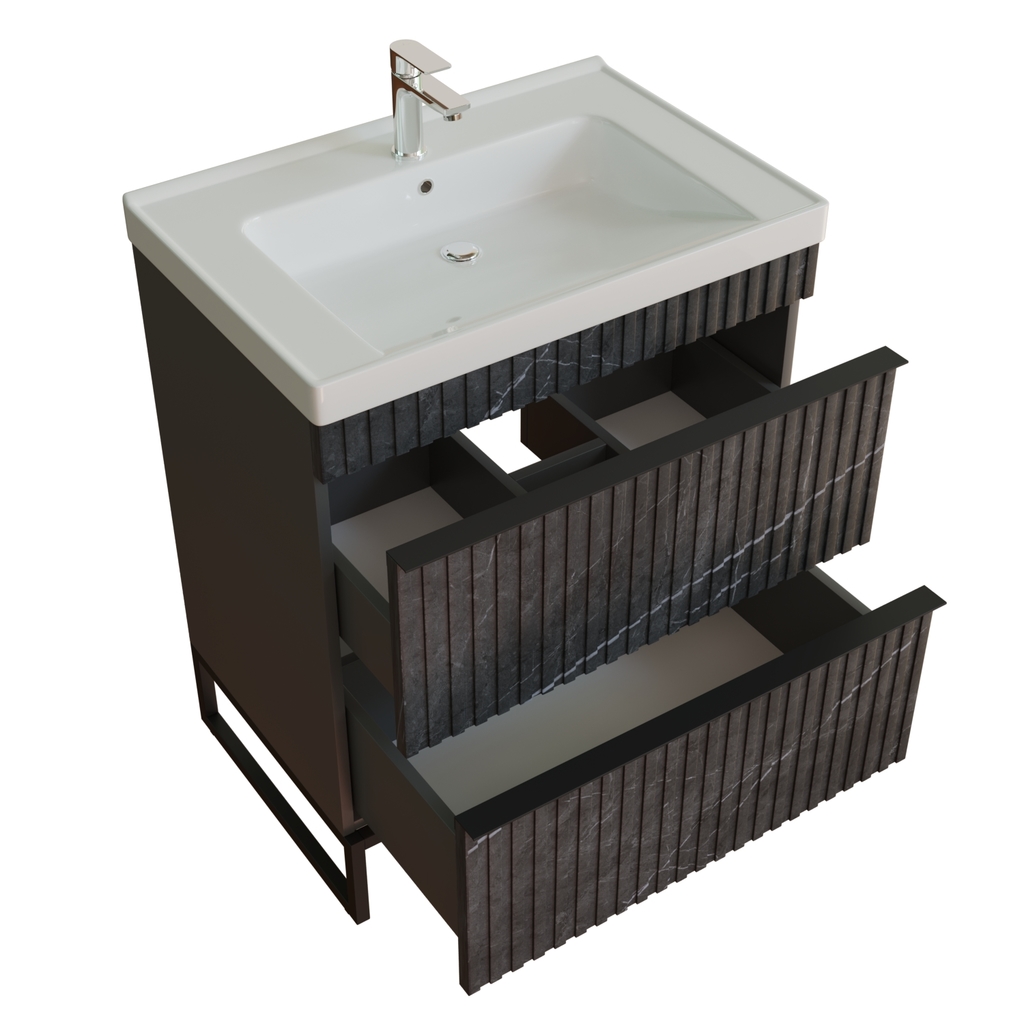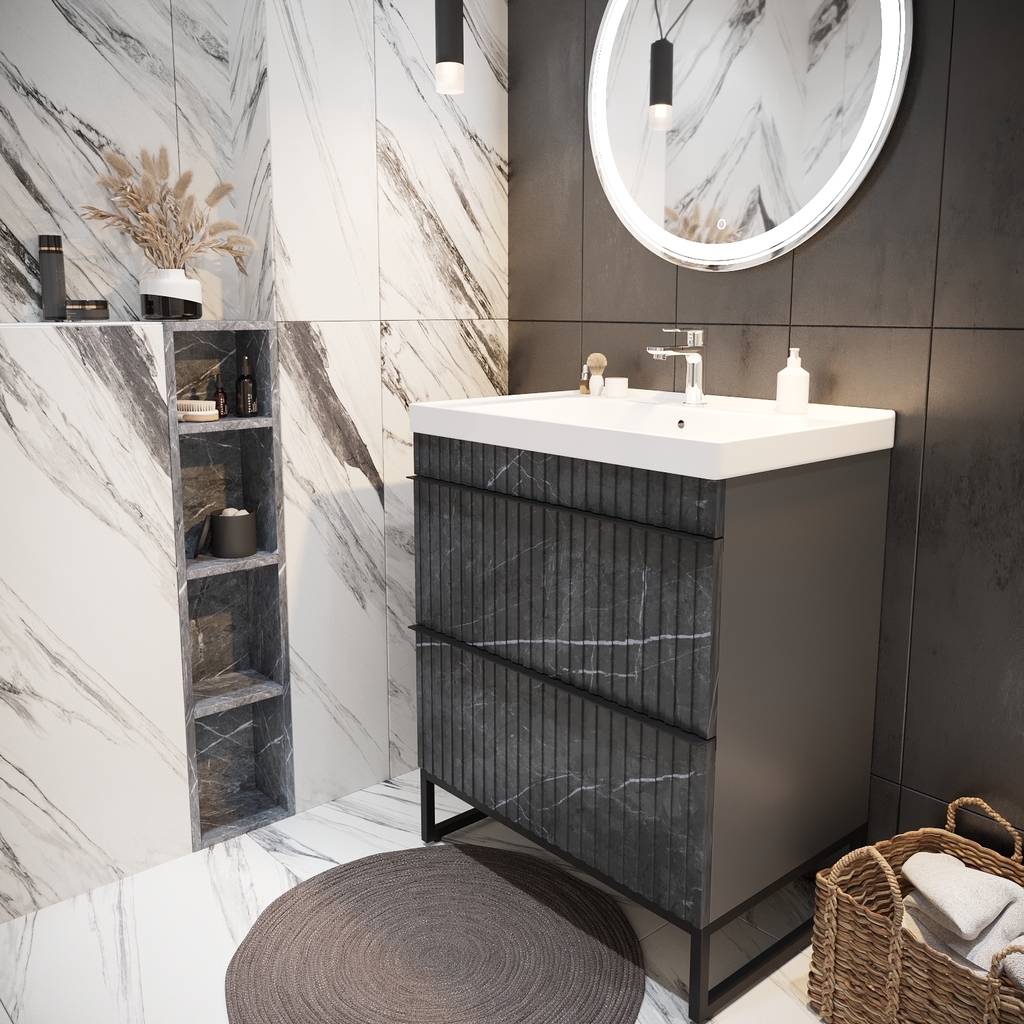 Тумба д/ванной "Окленд -70" Графит Мрамор под раковину Грэйс- 70 (DREJA) ЛОФТ (ПВХ)