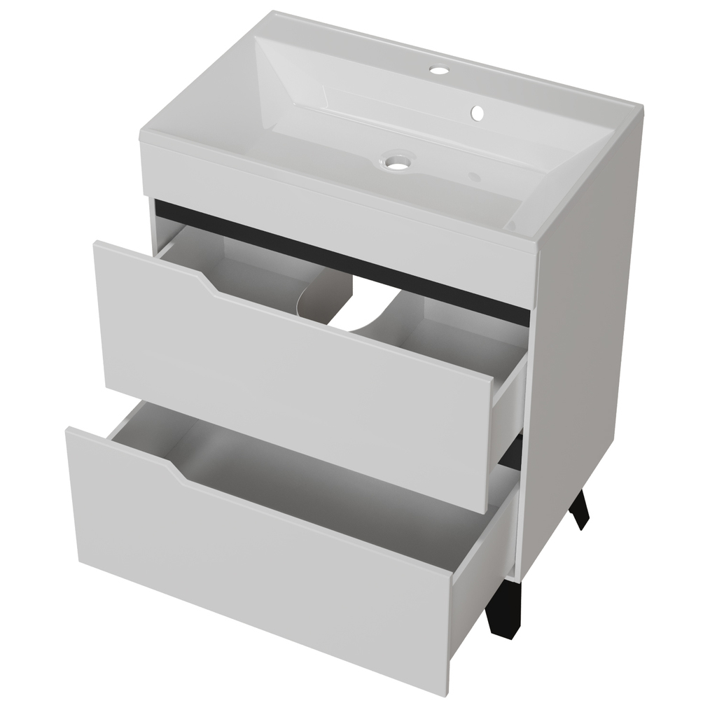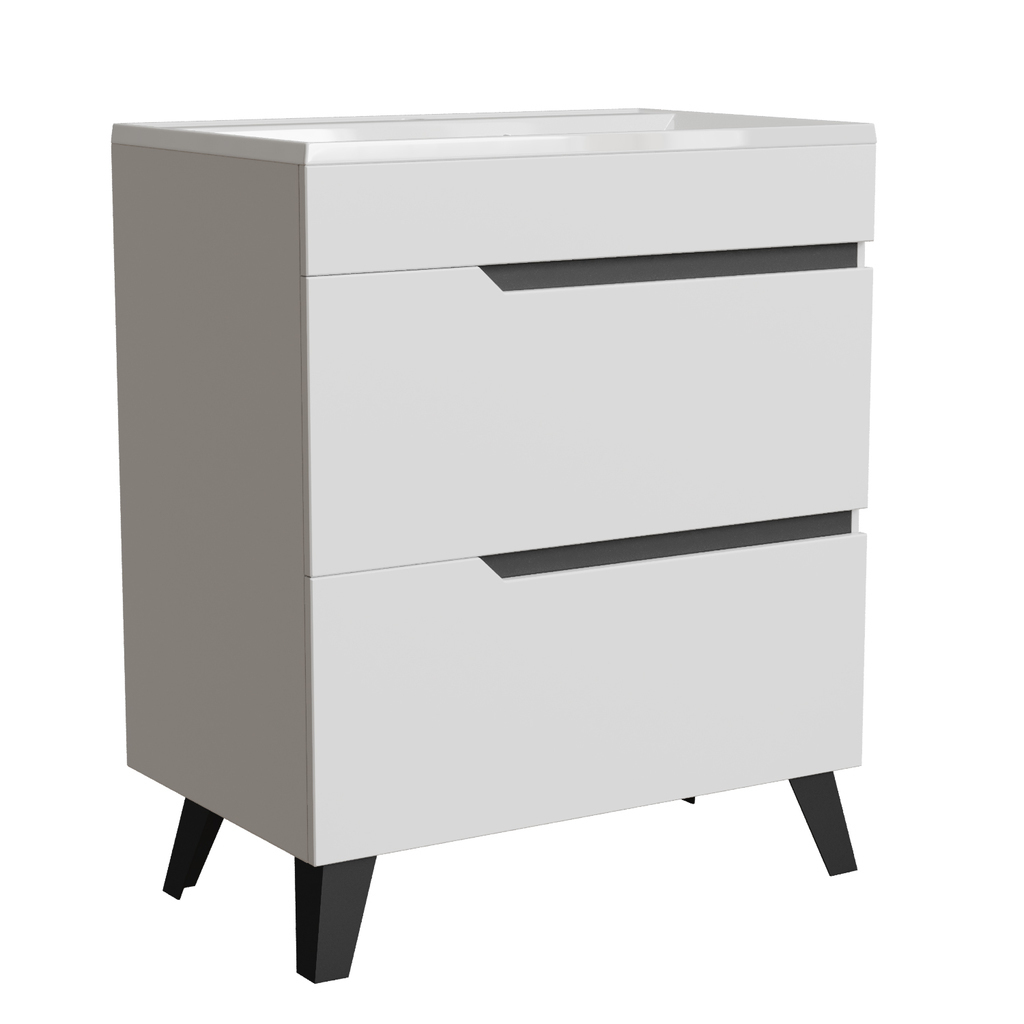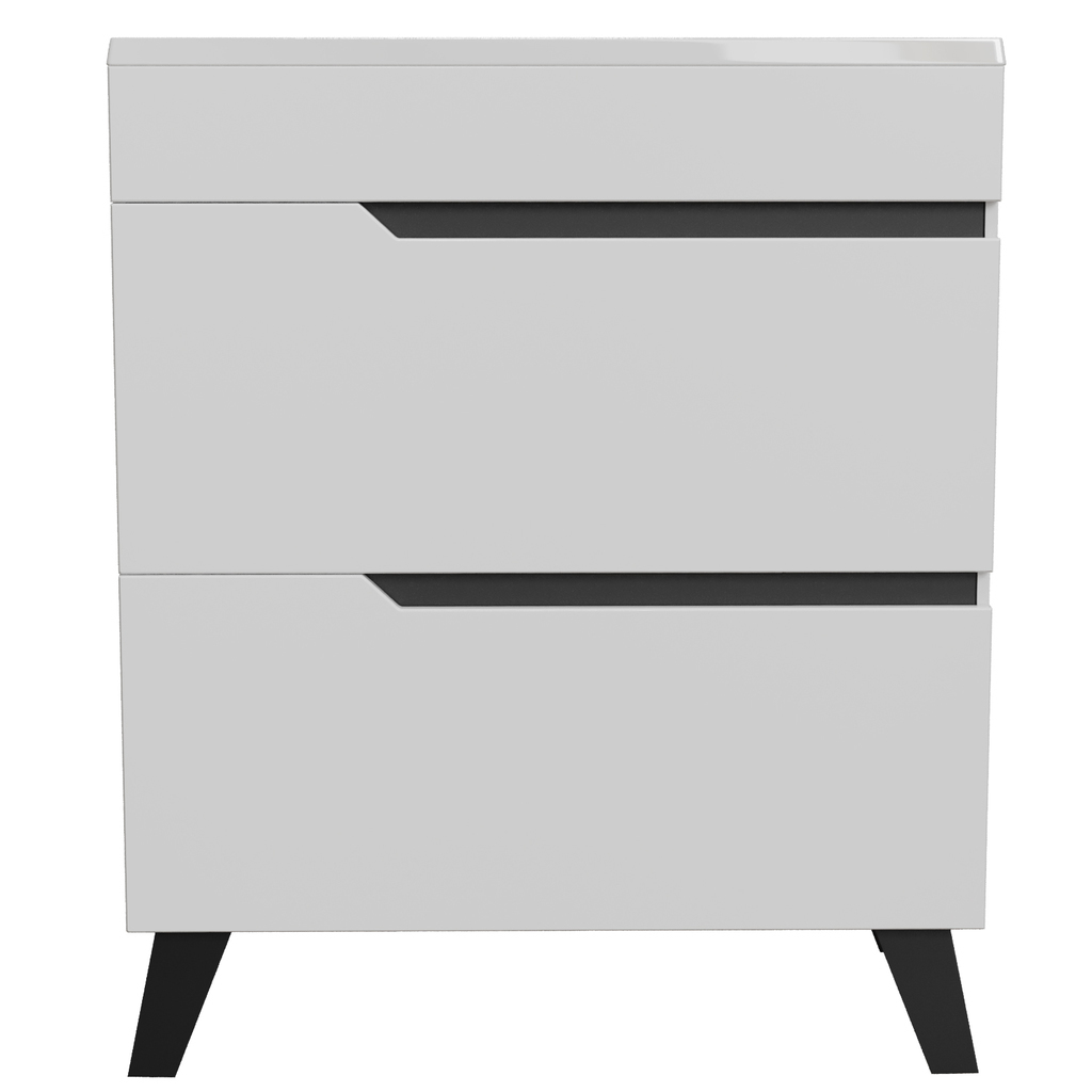 Тумбы из этой серии характеризуются сдержанными формами и аккуратным дизайном, который идеально впишется в любой интерьер. Корпус изготовлен из влагостойкого ЛДСП, фасады — из МДФ с ПВХ-пленкой, что гарантирует длительный срок службы и высокую устойчивость к влажности. Тумбы оснащены двумя просторными ящиками с системой плавного закрывания.