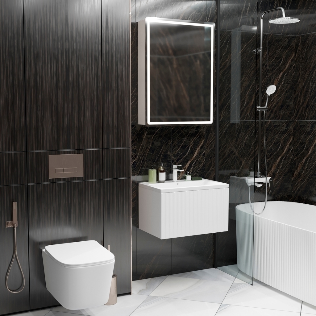 Стильная коллекция ВЕКТОР создана для поклонников геометрии в дизайне. Она идеально впишется в современный интерьер и расставит акценты в монохромном дизайне.Рельефный фасад тумб добавит объемные текстуры в интерьер ванной комнаты.