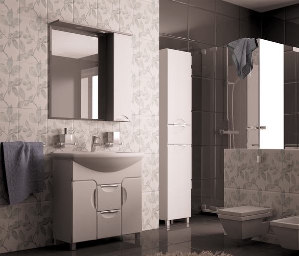 Этот комплект мебели с оригинальным дизайном. Знаковой фигурой является тумба с геометрическими линиями на фасаде. Хорошо подобранная фурнитура усиливает эффект четких прямых линий и формирует правильный квадрат в центре.Комплектация - ручка (металл) - 1, полка (стекло) - 2, полкодержатель - 8, подсветка