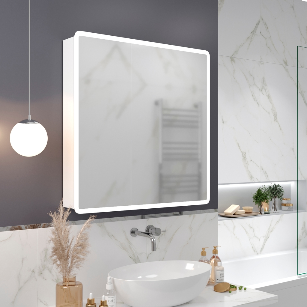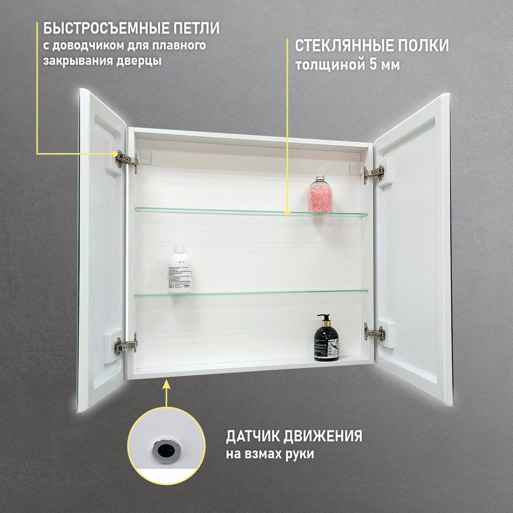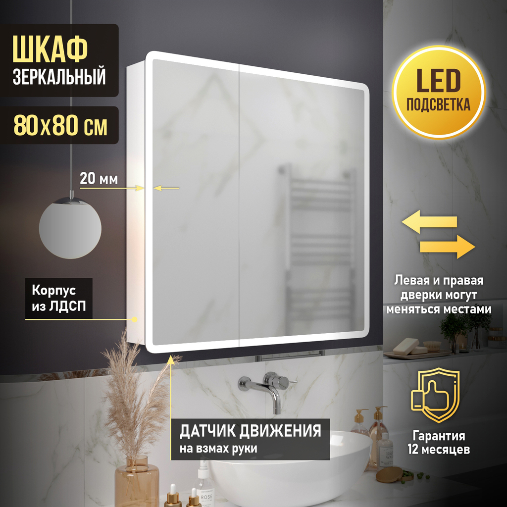 Зеркальный шкаф MIXLINE "Сканди" 800*800 (ШВ) 2 створки, универ. датчик движения,свет. подсветка