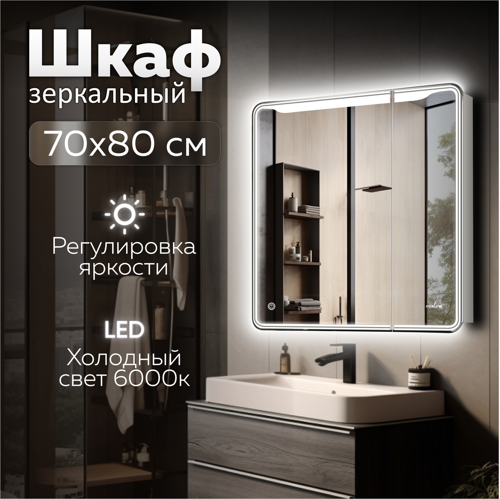 Зеркальный шкаф MIXLINE "ВИКТОРИЯ" 700*800 (ШВ) 2 ств,ЛЕВЫЙ, сенсорный выкл, светодиодная подсветка