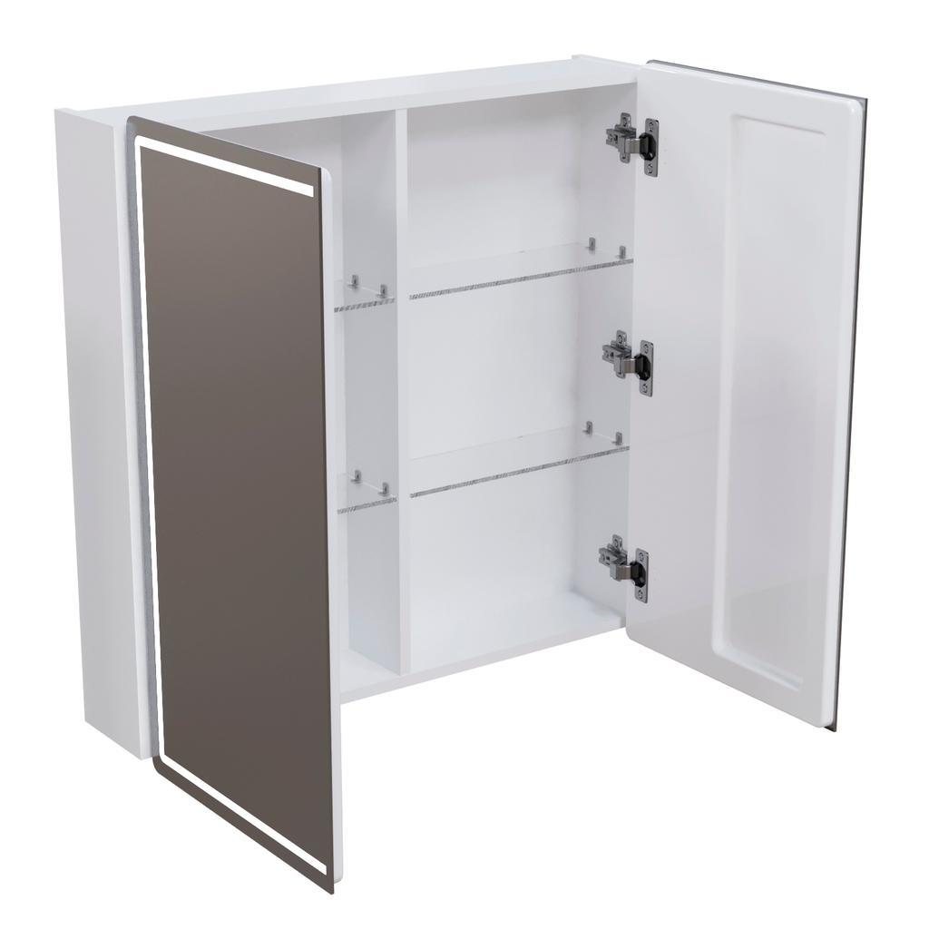 Коллекция зеркальных шкафов ВЕКТОР - это современное практичное решение для ванных комнат. Зеркальные шкафчики органично впишутся в любой интерьер ванной комнаты и позволят организовать вместительную зону хранения личных принадлежностей, благодаря стеклянным полочкам в комплекте.В качестве элемента подсветки используется светодиодная лента, которая обеспечивает яркое свечение по периметру зеркала.