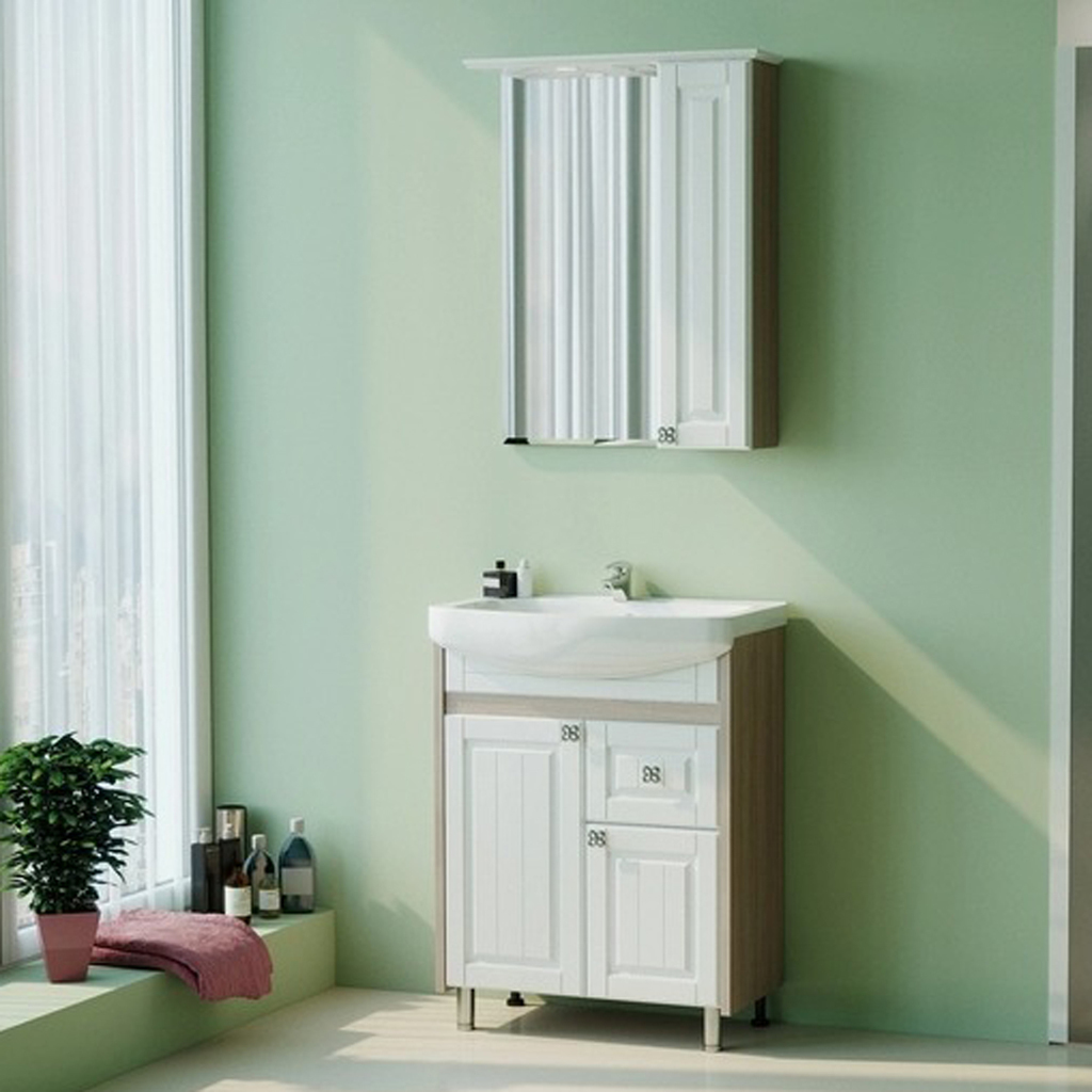Каждый элемент этой коллекции функционален, отделка под натуральное дерево и необычные ручки превращают эту мебель в стильное украшение ванной комнаты. Геометрически правильные комбинированные фасады комплекта мебели "ВЕРСАЛЬ" удачно обыграют интерьер ванной, а необычные ручки на тумбе и шкафчике добавят в него оригинальности.Сертификаты, декларации и паспорта товаров TIM