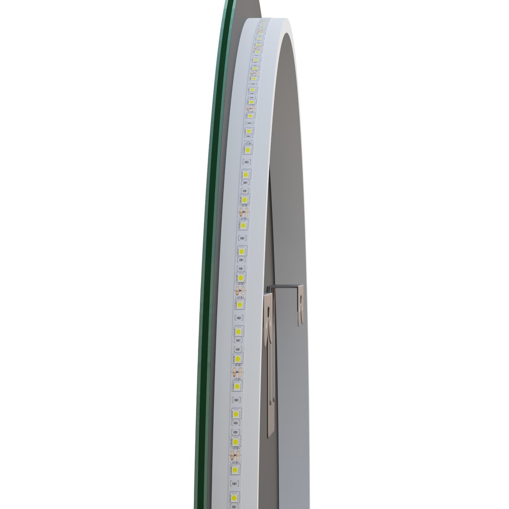 Все электрические компоненты размещены внутри корпуса из Abs-пластика, который защищает от влаги и механических повреждений. В качестве элемента подсветки используется светодиодная лента, которая обеспечивает яркое свечение по периметру зеркала. Зеркало влагостойкое и защищено от попадания случайных брызг и капель воды.