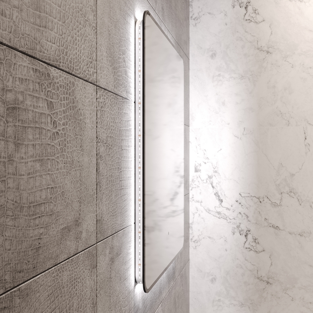 Современная светодиодная подсветка с влагозащитой IP20-IP33 обеспечивает не только эффектное освещение, но и надёжную работу в условиях повышенной влажности. Для изготовления продукции мы используем материалы высокого качества - серебряное влагостойкое зеркальное полотно от AEK (AGC Glass Russia - российская ветвь AGC Glass Europe).