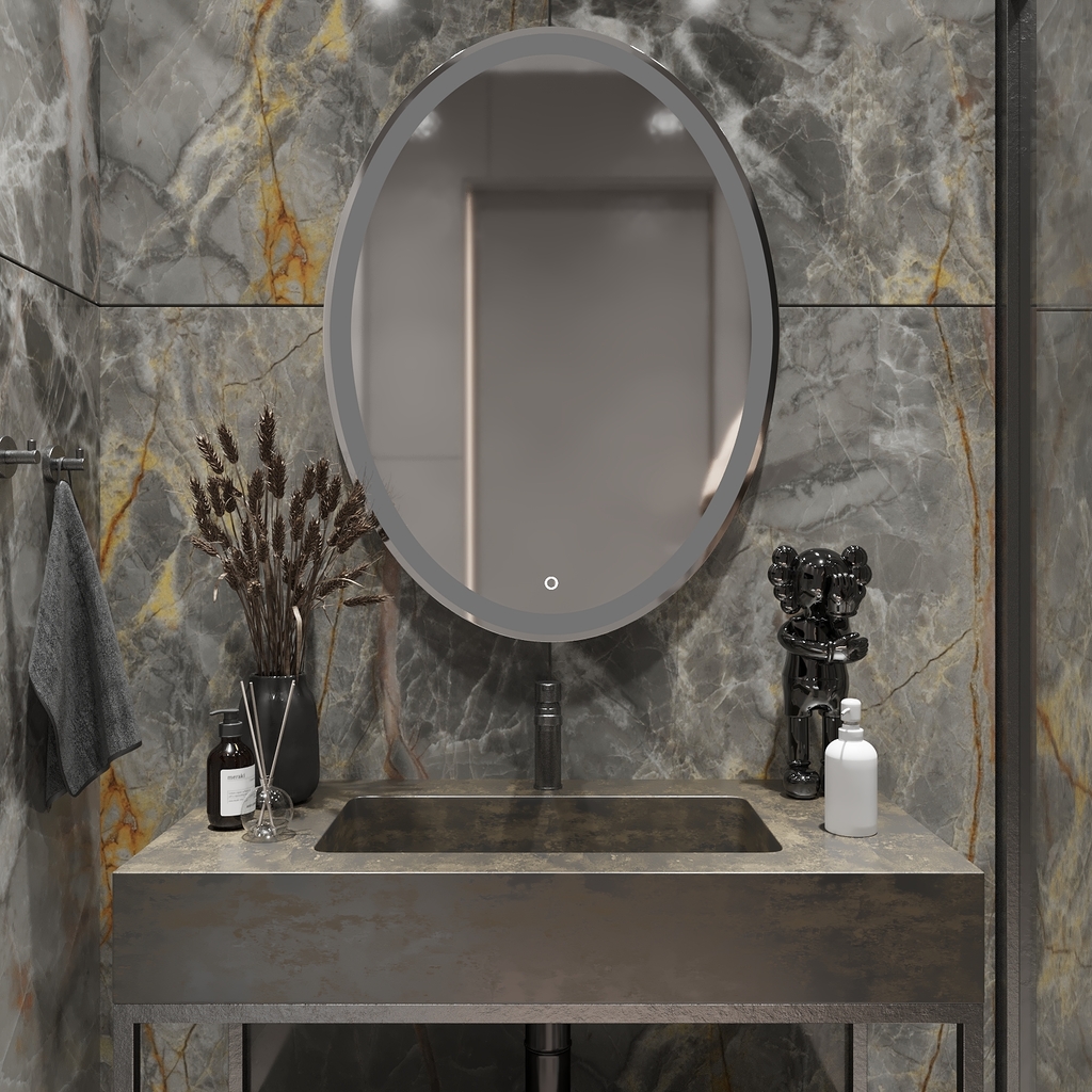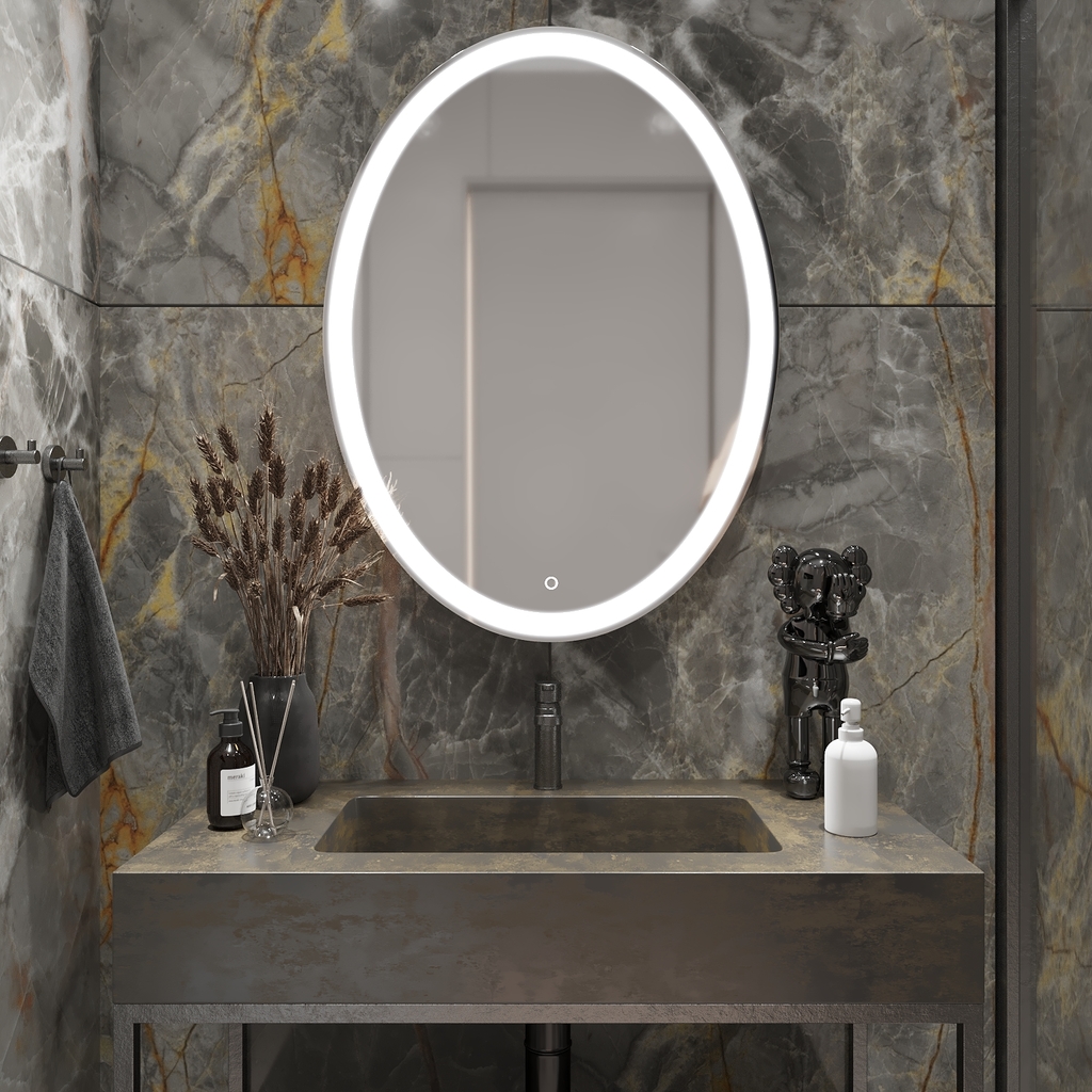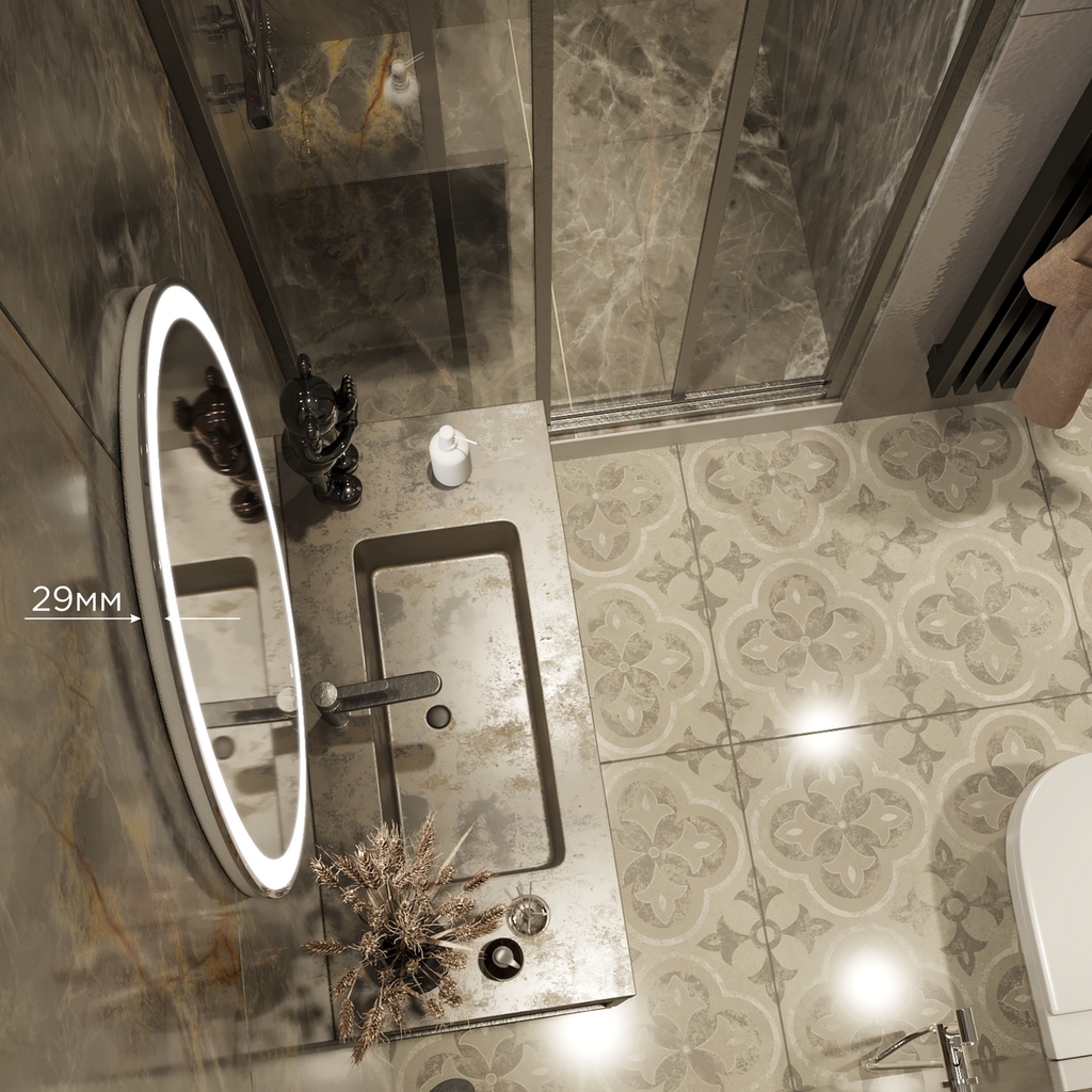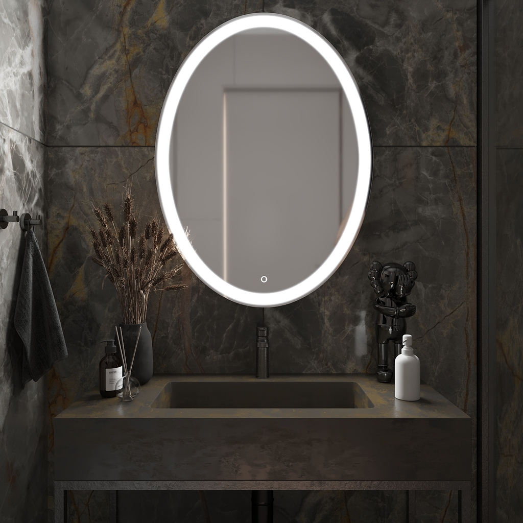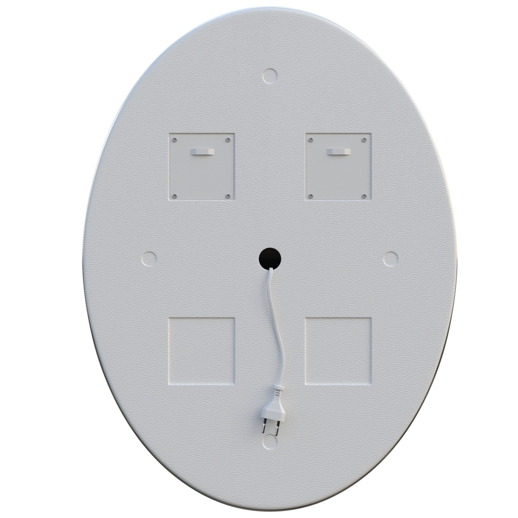 Все электрические компоненты размещены внутри корпуса из Abs-пластика, который защищает от влаги и механических повреждений. В качестве элемента подсветки используется светодиодная лента, которая обеспечивает яркое свечение по периметру зеркала. Зеркало влагостойкое и защищено от попадания случайных брызг и капель воды.