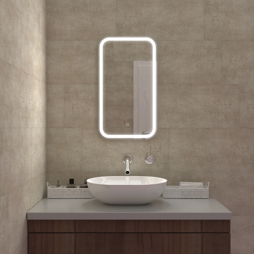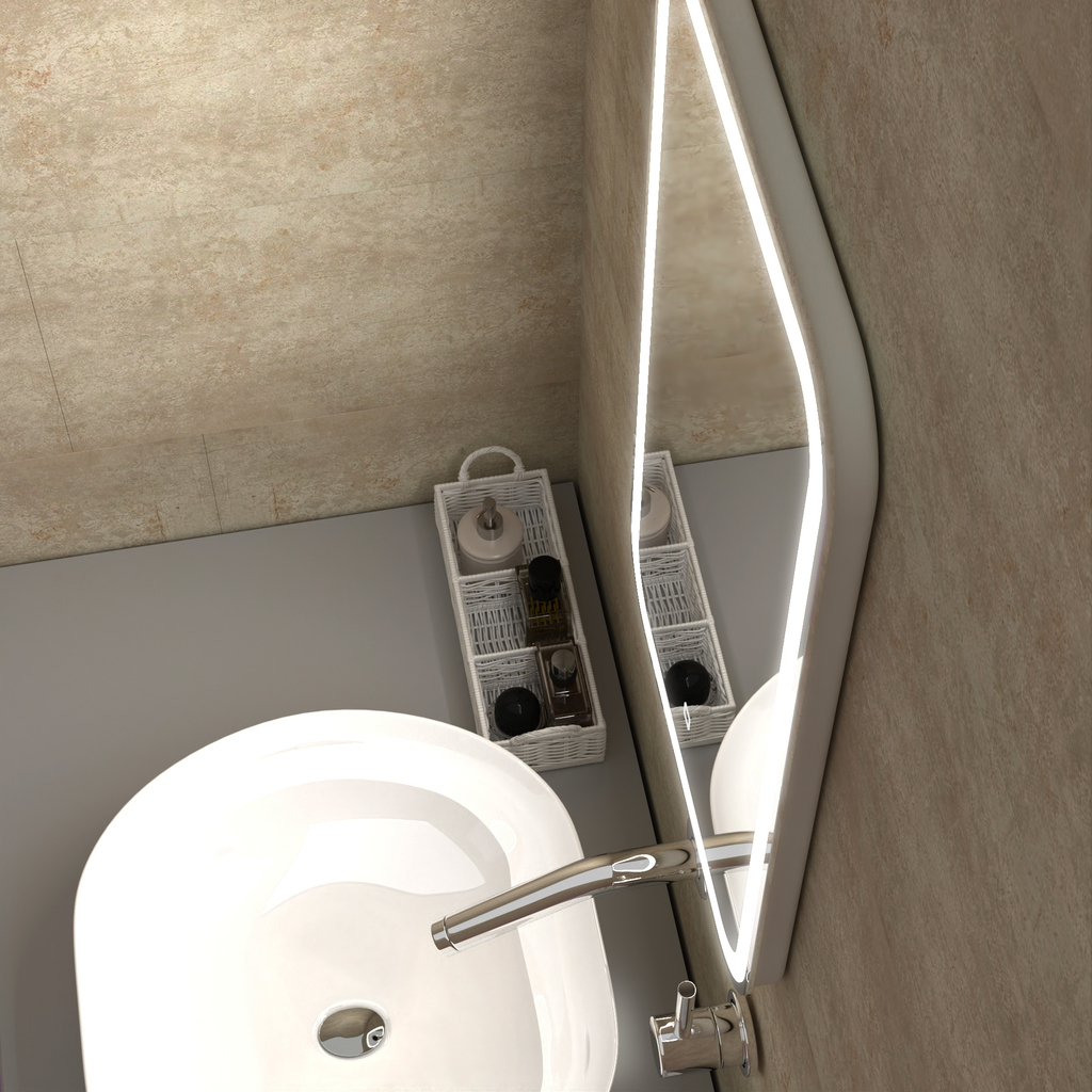 Особый характер этого зеркала с вертикальным расположением – в комбинации прямоугольной формы и мягкой геометрии. Световая рама расположена не по краям периметра, а несколько отступает от него. Графичность рисунка и всей формы смягчают скруглённые углы. Благодаря этой находке довольно минималистичный дизайн не мешает этому зеркалу быть яркой акцентной деталью любого пространства: от строгой, упорядоченной классики и сдержанного минимализма до свободолюбивых эклектичных интерьеров.Современная светодиодная подсветка с влагозащитой IP20-IP33 обеспечивает не только эффектное освещение, но и надёжную работу в условиях повышенной влажности. Для изготовления продукции мы используем материалы высокого качества - серебряное влагостойкое зеркальное полотно от AEK (AGC Glass Russia - российская ветвь AGC Glass Europe).