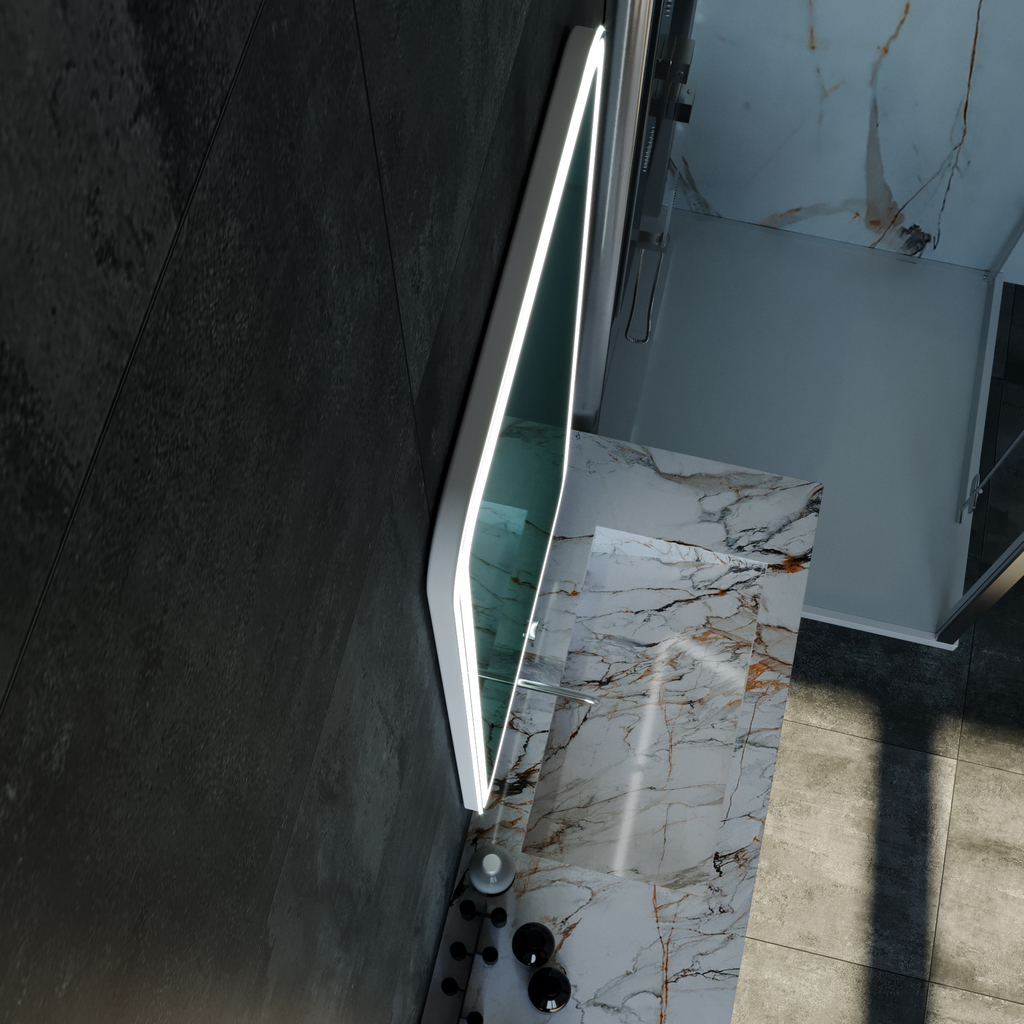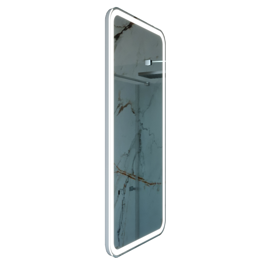 Зеркало локаничного дизайна с фронтальной LED-подсветкой и возможность монтажа как вертикально, так и горизонтально, оснощённое бесконтактным сенсором. Световая рама расположена не по краям периметра, а несколько отступает от него. Графичность рисунка и всей формы смягчают скруглённые углы. Благодаря этой находке довольно минималистичный дизайн не мешает этому зеркалу быть яркой акцентной деталью любого пространства: от строгой, упорядоченной классики и сдержанного минимализма до свободолюбивых эклектичных интерьеров.Современная светодиодная подсветка с влагозащитой IP20-IP33 обеспечивает не только эффектное освещение, но и надёжную работу в условиях повышенной влажности. Для изготовления продукции мы используем материалы высокого качества - серебряное влагостойкое зеркальное полотно от AEK (AGC Glass Russia - российская ветвь AGC Glass Europe).