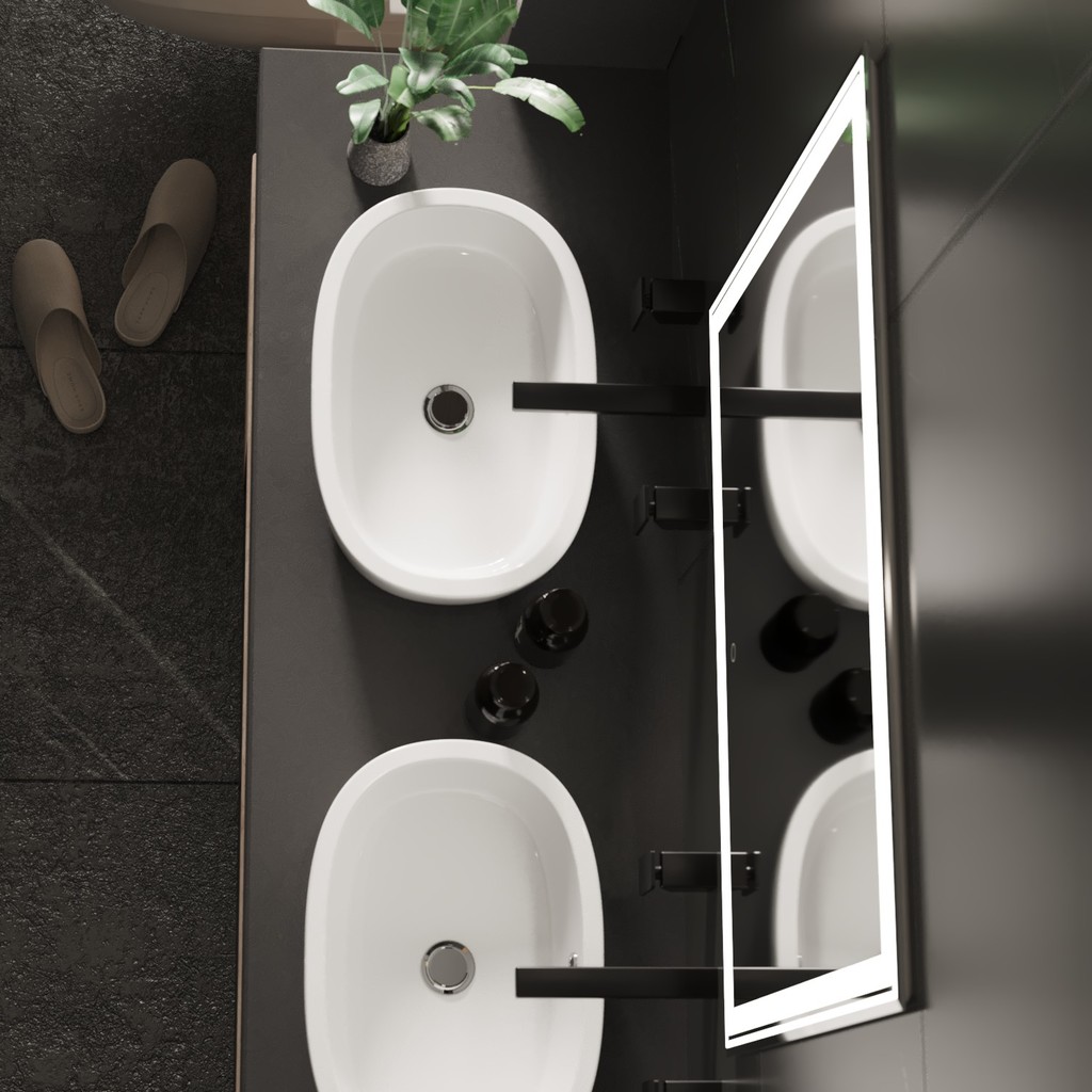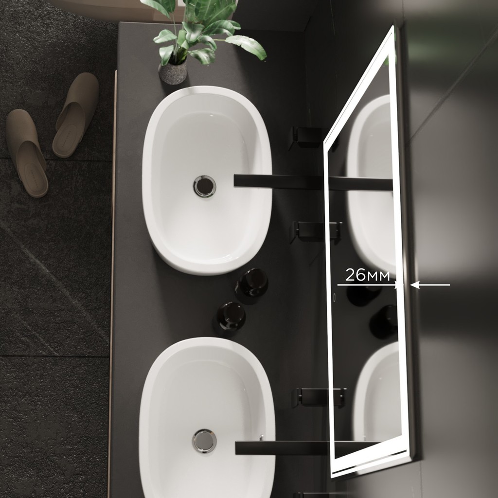 Все электрические компоненты размещены внутри корпуса из Abs-пластика, который защищает от влаги и механических повреждений. В качестве элемента подсветки используется светодиодная лента, которая обеспечивает яркое свечение по периметру зеркала. Зеркало влагостойкое и защищено от попадания случайных брызг и капель воды.