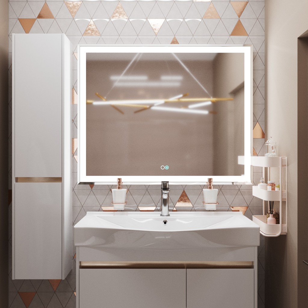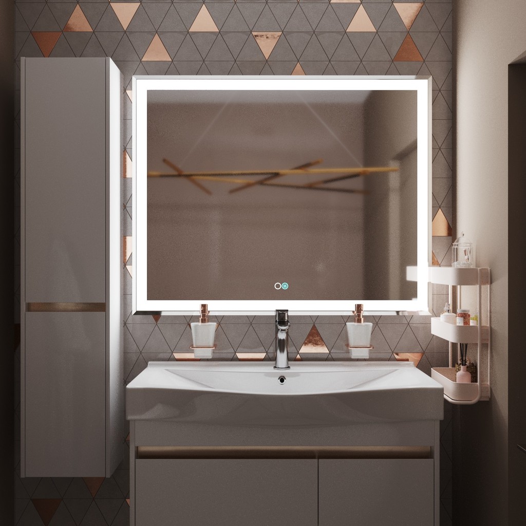 Настенное зеркало для ванной Mixline с подсветкой 100 х 80 см изготовлено из зеркального полотна толщиной 4 мм.Оснащено сенсорным выключателем и диммером, который при удержании пальца на сенсоре позволяет менять интенсивность освещения. Свет белый (холодный 5800К - 6300К). Срок службы диодов - 100 000 часов.