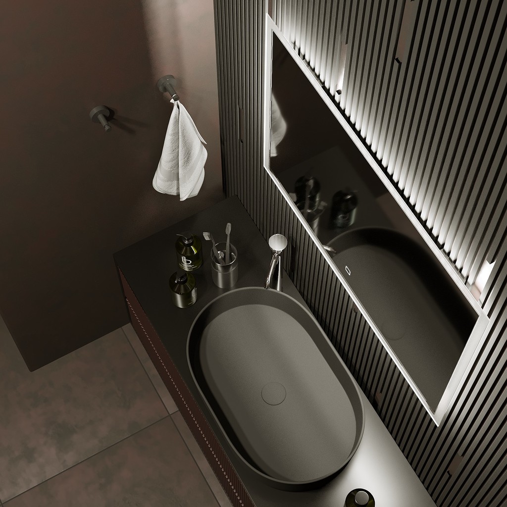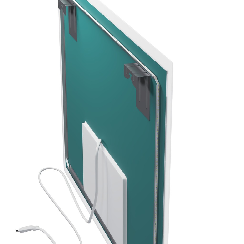 Все электрические компоненты размещены внутри корпуса из Abs-пластика, который защищает от влаги и механических повреждений. В качестве элемента подсветки используется светодиодная лента, которая обеспечивает яркое свечение по периметру зеркала. Зеркало влагостойкое и защищено от попадания случайных брызг и капель воды.