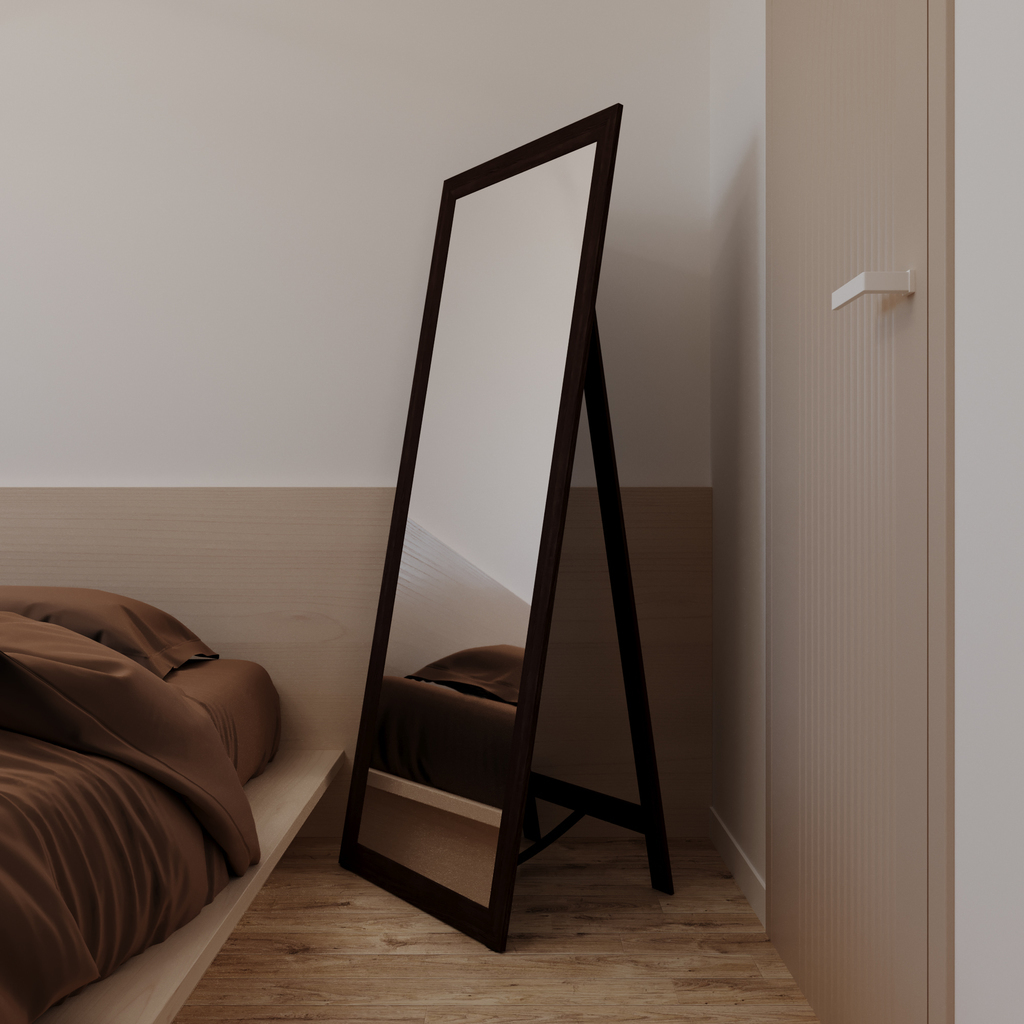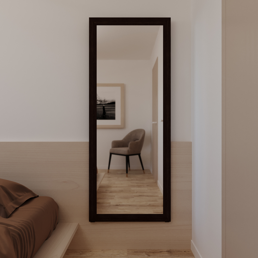 Напольное зеркало формата оversize — незаменимый инструмент для преображения пространства. Отражая максимум света и наполняя им помещение, зеркало делает его более просторным. По вашему желанию зеркало может быть размещено как на полу, так и на стене. Оно станет настоящей волшебной палочкой для моделирования небольших комнат — ванной, прихожей, узкого коридора. Модель в багетной раме с эффектом под тёмное дерево — беспроигрышный вариант для любого интерьера, от классики до современного стиля. Строгая прямоугольная форма, лаконичное обрамление с имитацией структуры дерева соответствуют тренду на визуальную простоту и натуральность. В то же время багет в любом, даже самом простом исполнении всегда привносит в интерьер нотку изысканности.Сертификаты, декларации и паспорта товаров TIM
