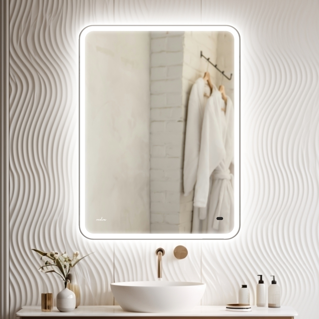 Настенное зеркало для ванной Mixline с подсветкой 50 х 70 см изготовлено из зеркального полотна толщиной 4 мм.Оснащено бесконтактным сенсором и диммером, который позволяет менять интенсивность освещения. Свет белый (холодный 5800К - 6300К). Срок службы диодов - 100 000 часов.