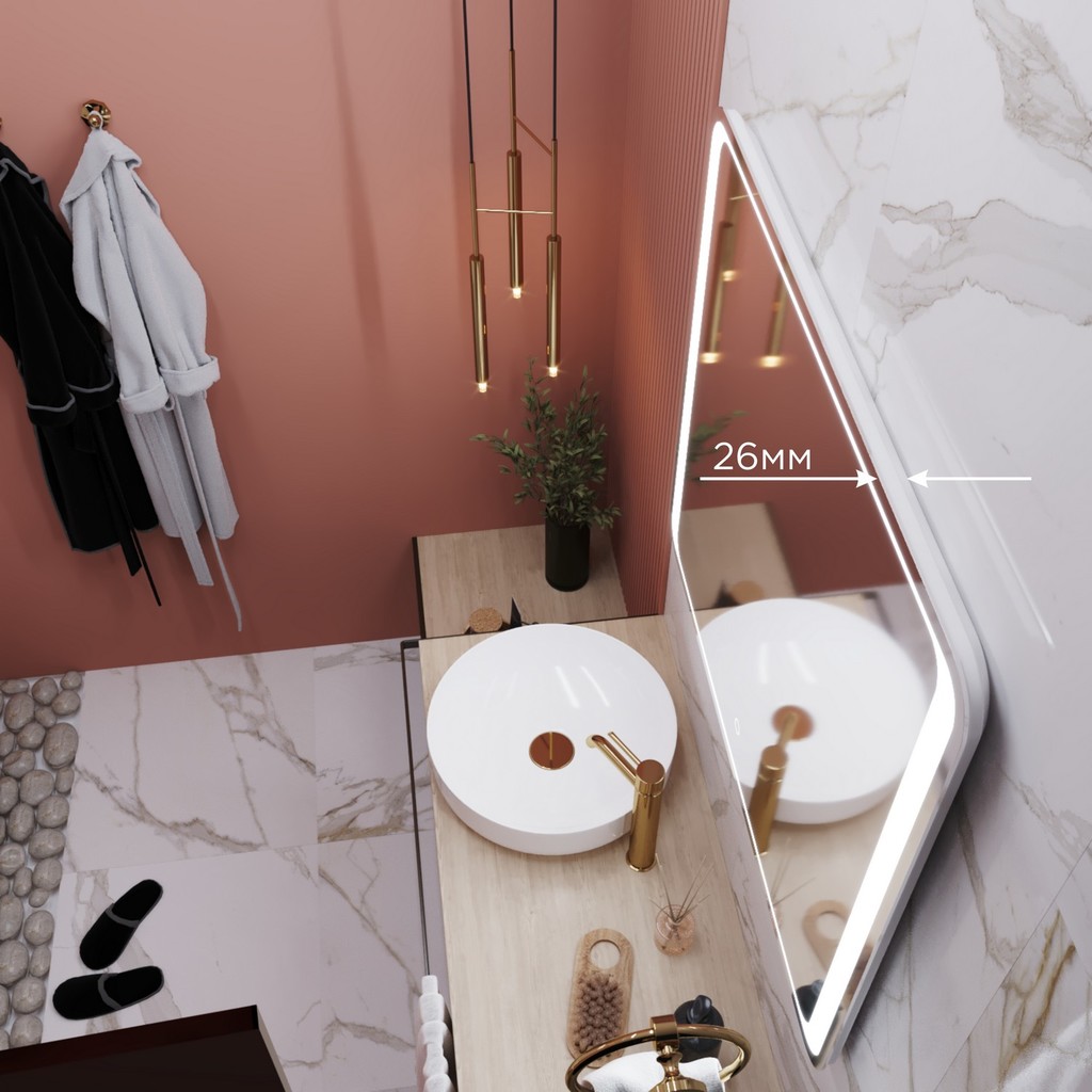 Современная светодиодная подсветка с влагозащитой IP20-IP33 обеспечивает не только эффектное освещение, но и надёжную работу в условиях повышенной влажности. Для изготовления продукции мы используем материалы высокого качества - серебряное влагостойкое зеркальное полотно от AEK (AGC Glass Russia - российская ветвь AGC Glass Europe).