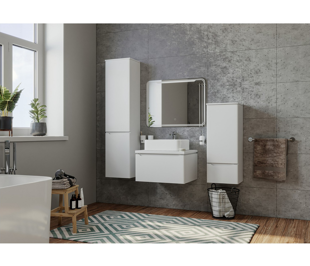 Зеркало Виктория или зеркальный шкаф со светодиодной подсветкой и сенсорным выключателем создают единый гармоничный ансамбль с минималистичной мебелью тм Mixline.