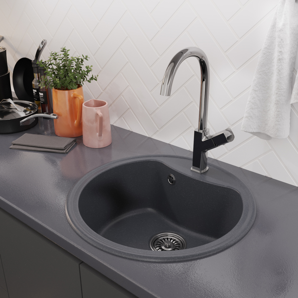 Мойкa ML-GM09 КОМФОРТ круглая, антрацит (343), 510 мм (глуб. чаши 190)