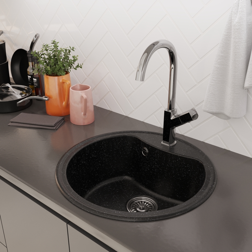 Мойкa ML-GM09 КОМФОРТ круглая, черная (308), 510 мм (глуб. чаши 190)