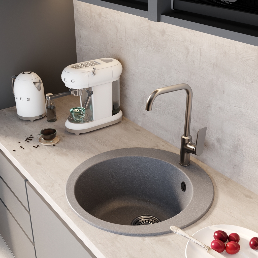 Мойкa ML-GM13 КОМФОРТ круглая, графит (342), 495мм (глуб. чаши 200)